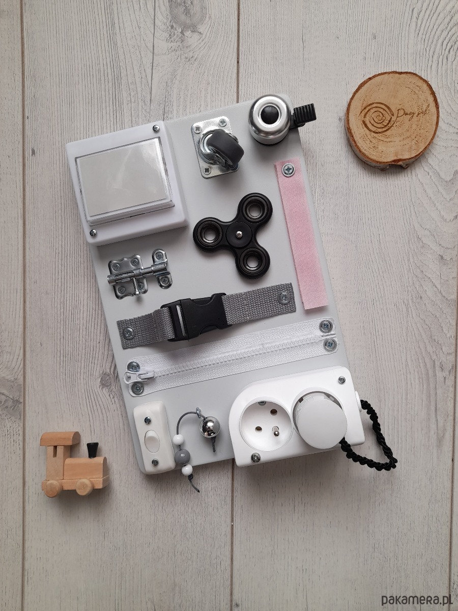 Prezentowana przez nas tablica manipulacyjna w wersji „mini” wykonana jest na drewnianej sklejce brzozowej.