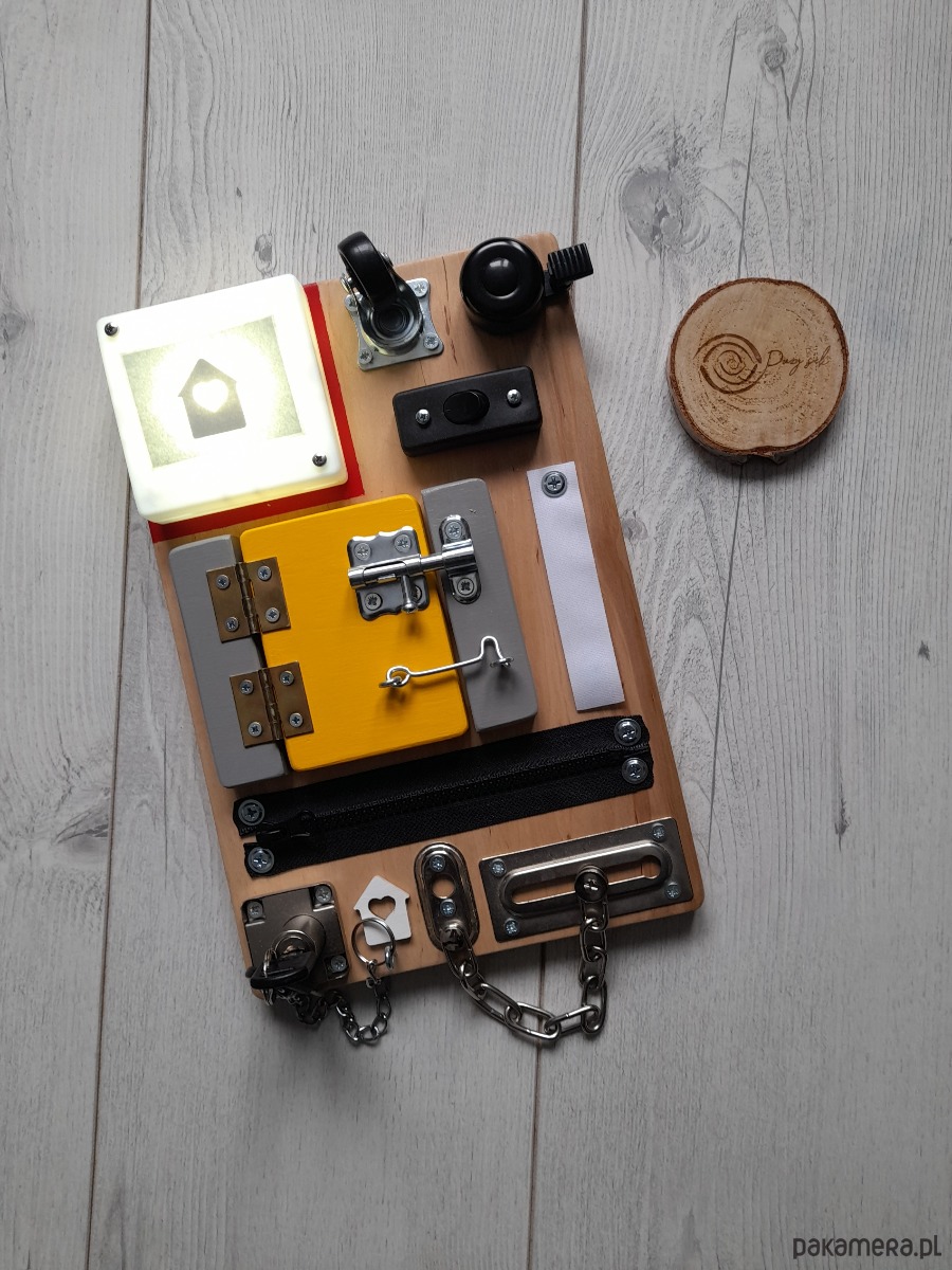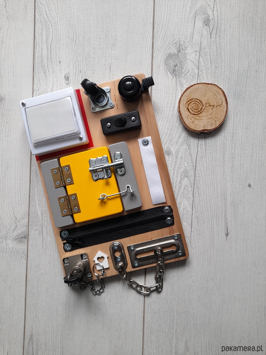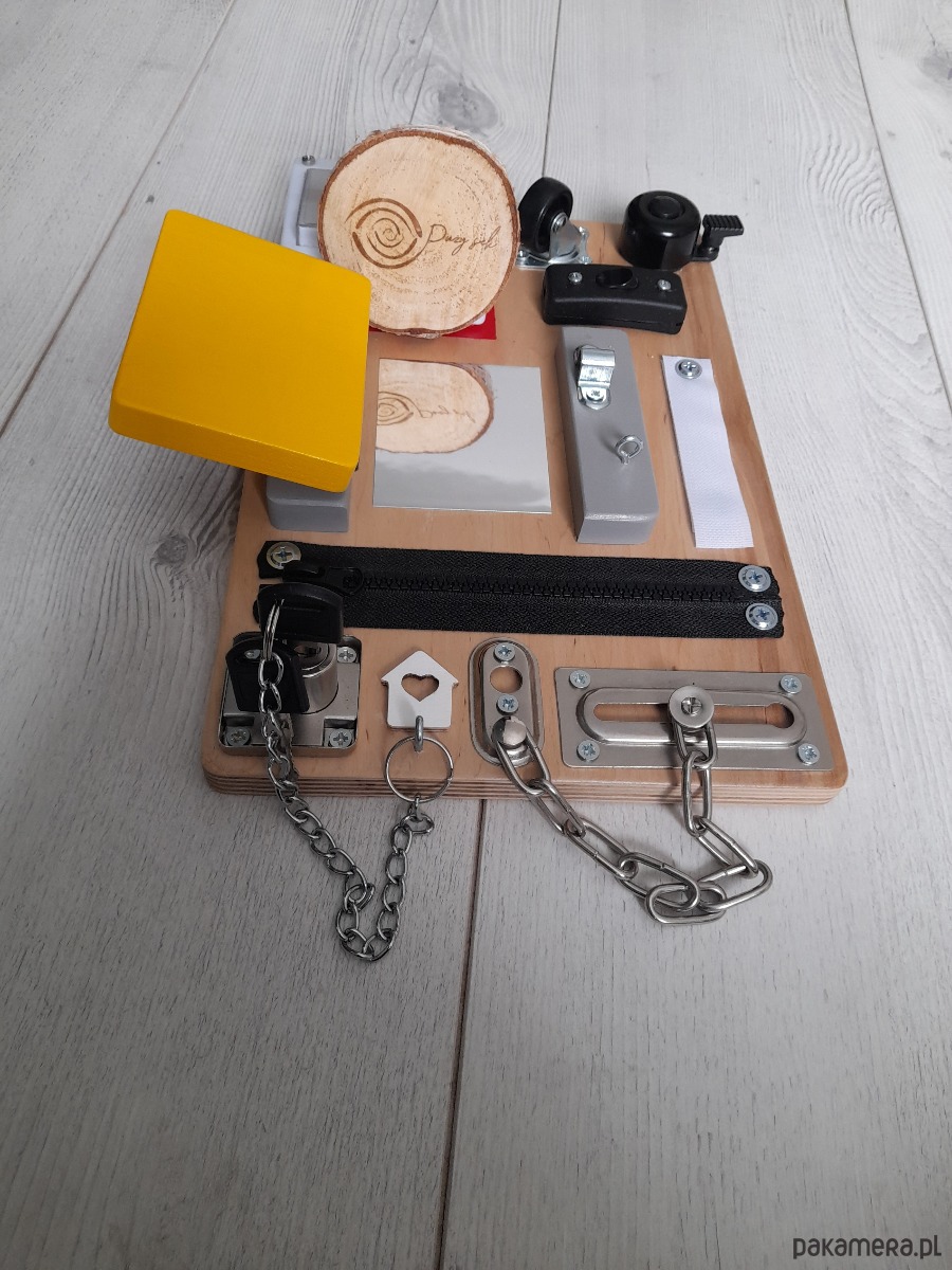 Prezentowana przez nas tablica manipulacyjna w wersji „mini” wykonana jest na drewnianej sklejce brzozowej.