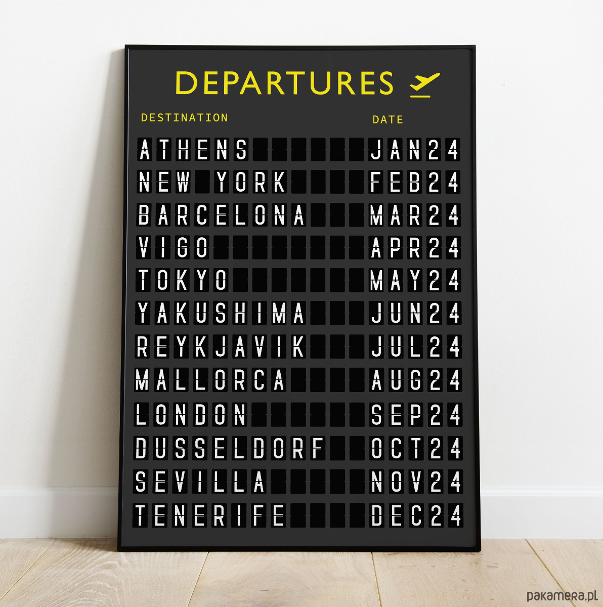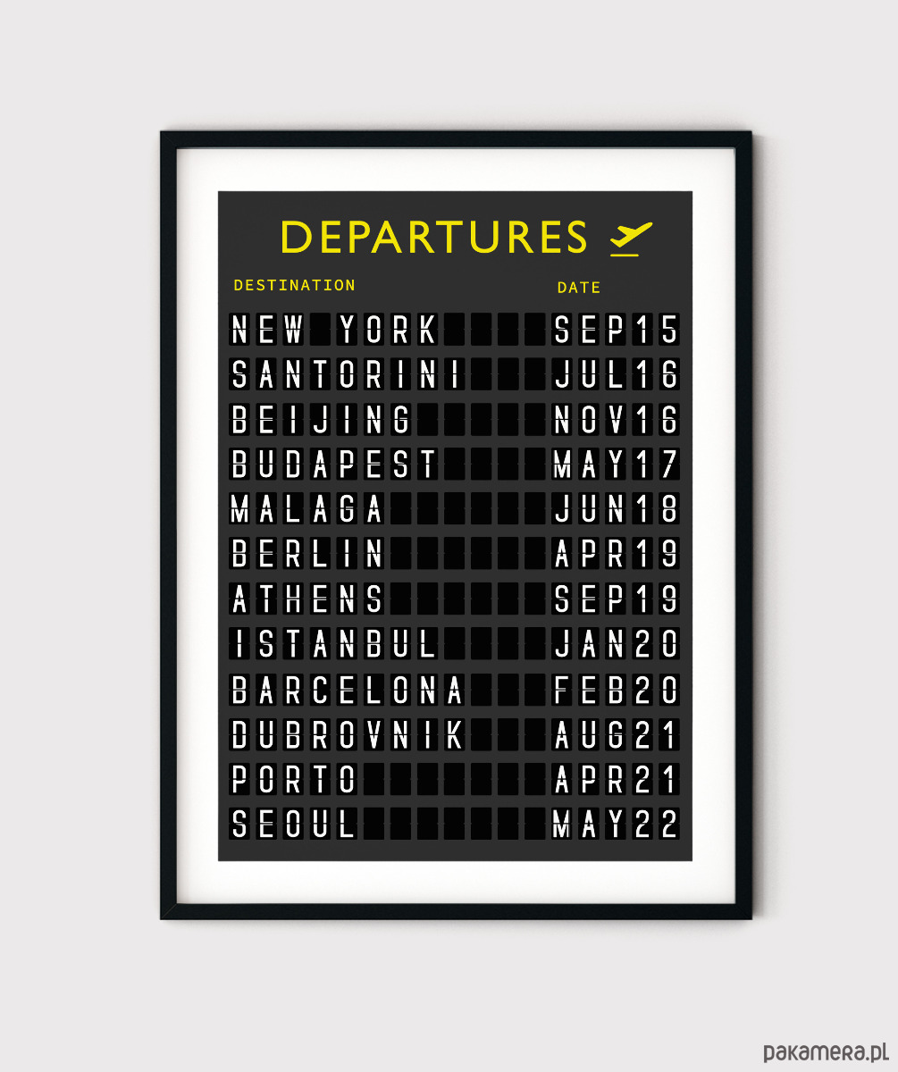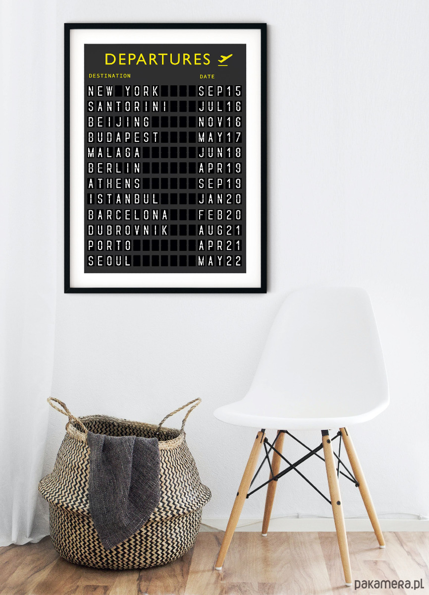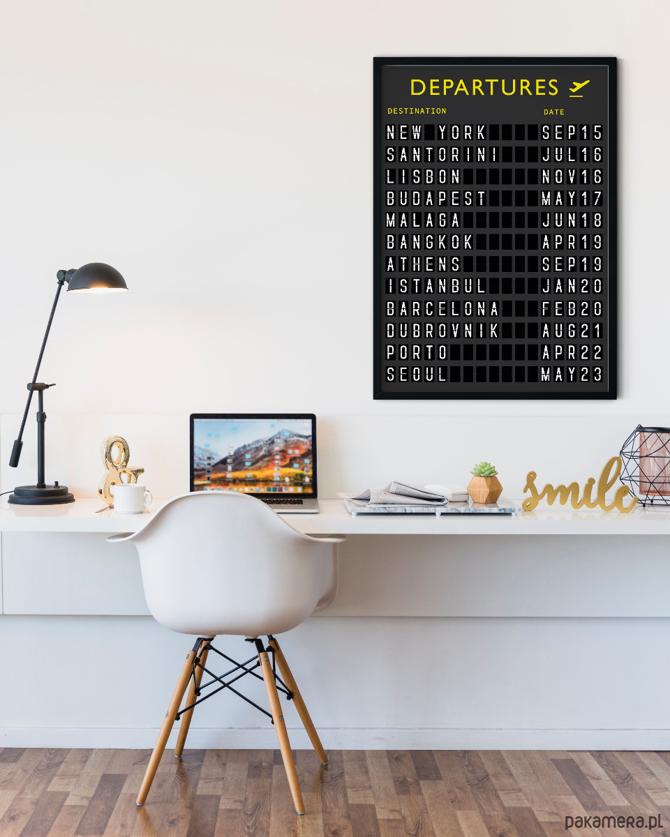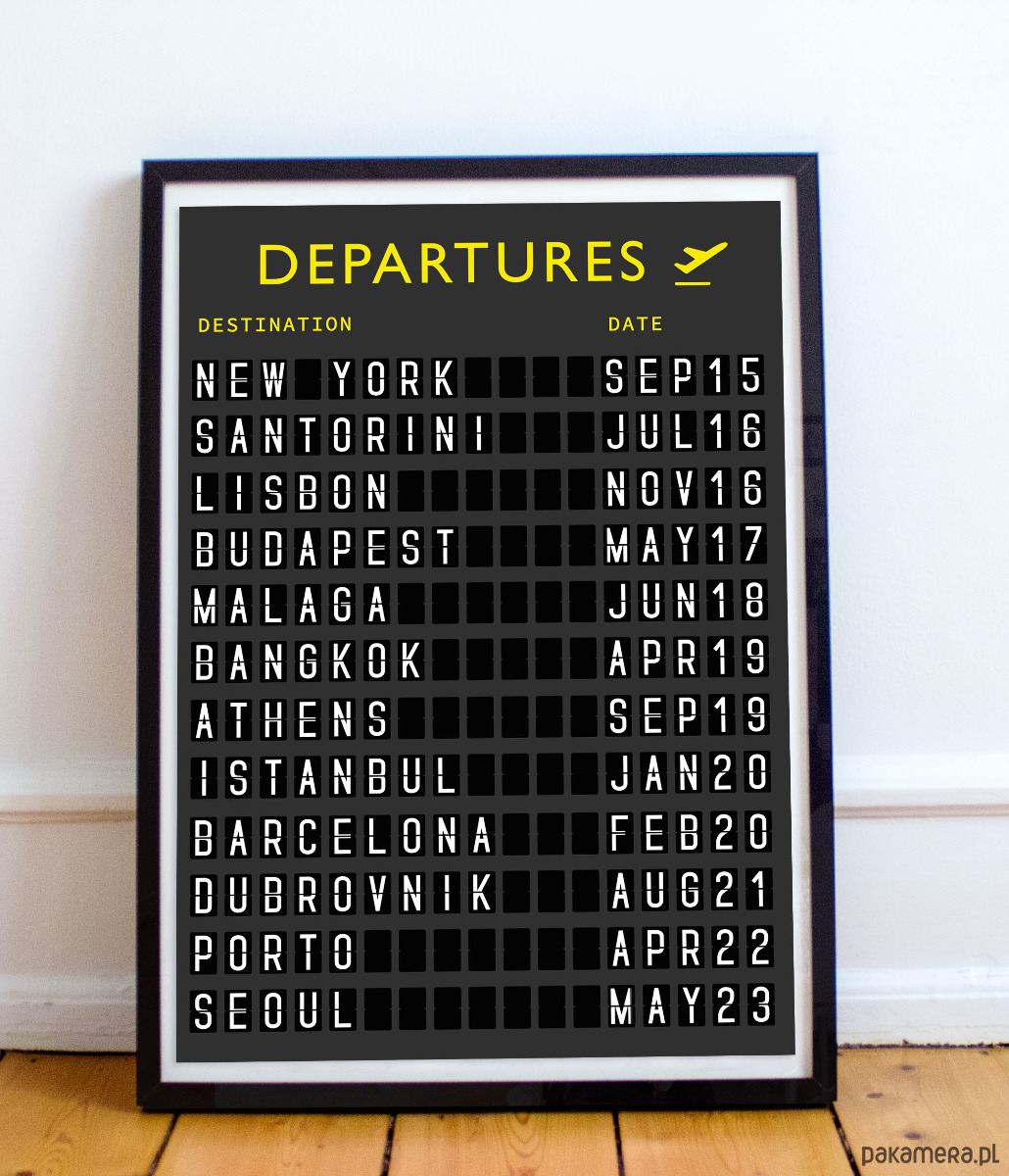 Plakat podróżniczy - tablica odlotów z możliwością personalizacji.
