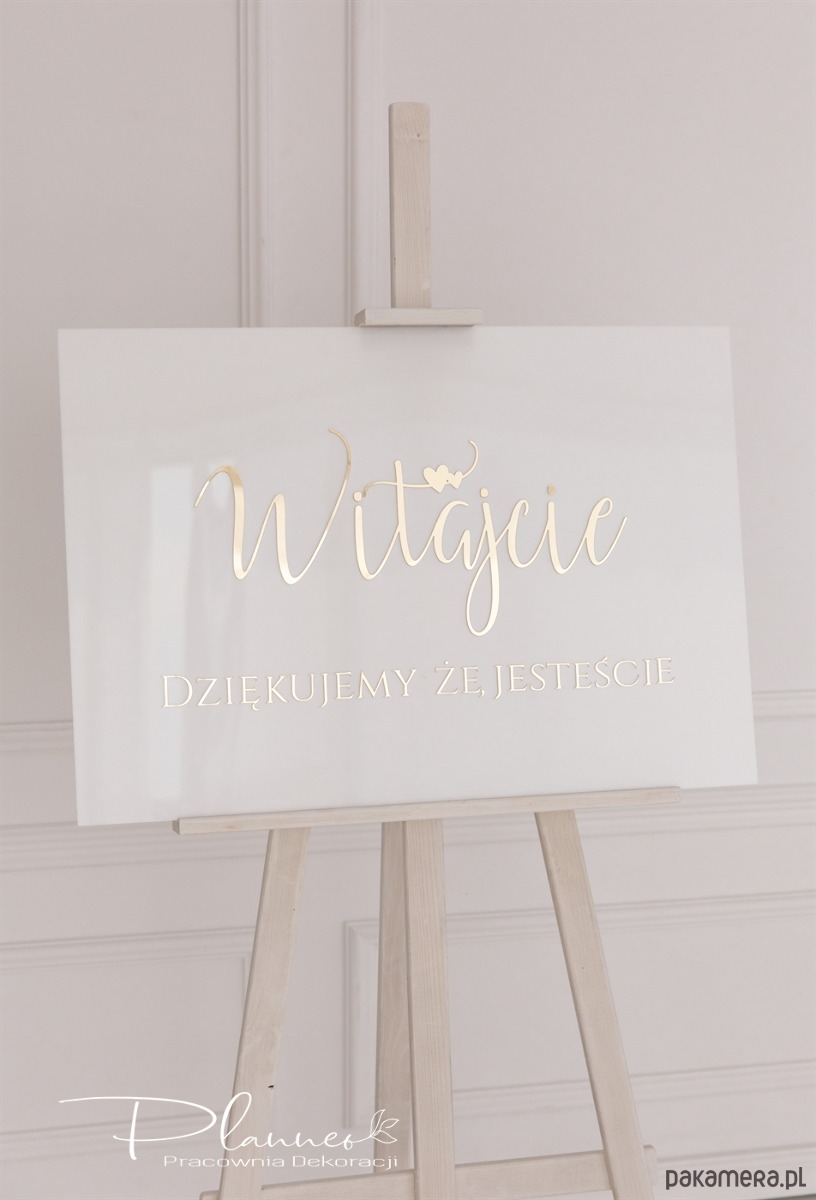 Tablica powitalna elegancka „Witajcie” z serduszkami to wyjątkowy akcent, który już od progu wprowadza gości w klimat uroczystości. Wykonana z najwyższą starannością, zachwyca precyzyjnym cięciem laserowym i lustrzanymi napisami. To dekoracja, która od razu zwraca uwagę i staje się pięknym elementem tła dla zdjęć. Świetnie wpisuje się w eleganckie i romantyczne aranżacje weselne.