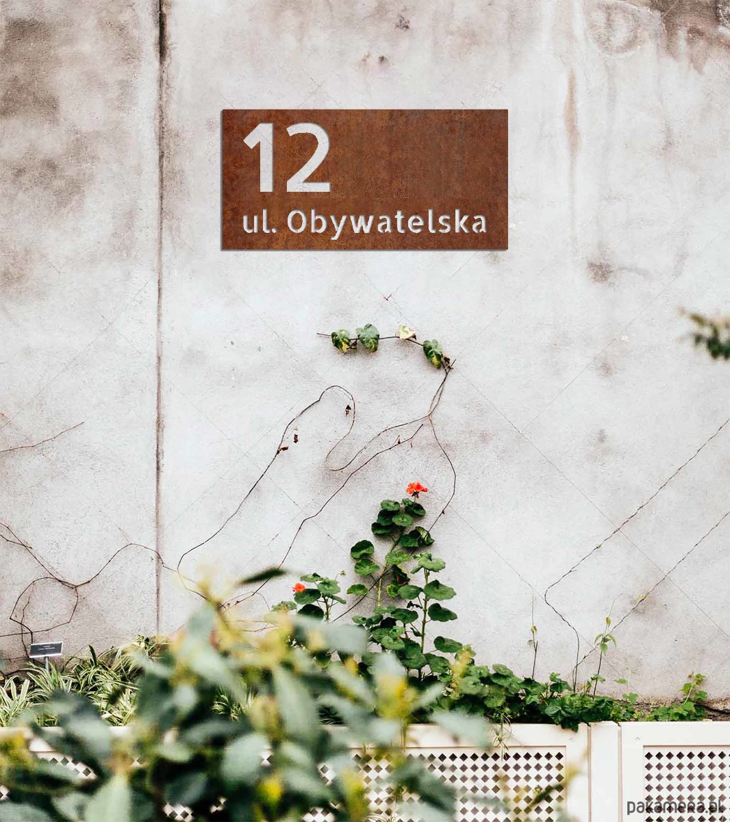 Tablica adresowa, numer domu ze stali corten z efektem rdzy