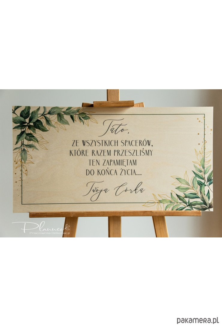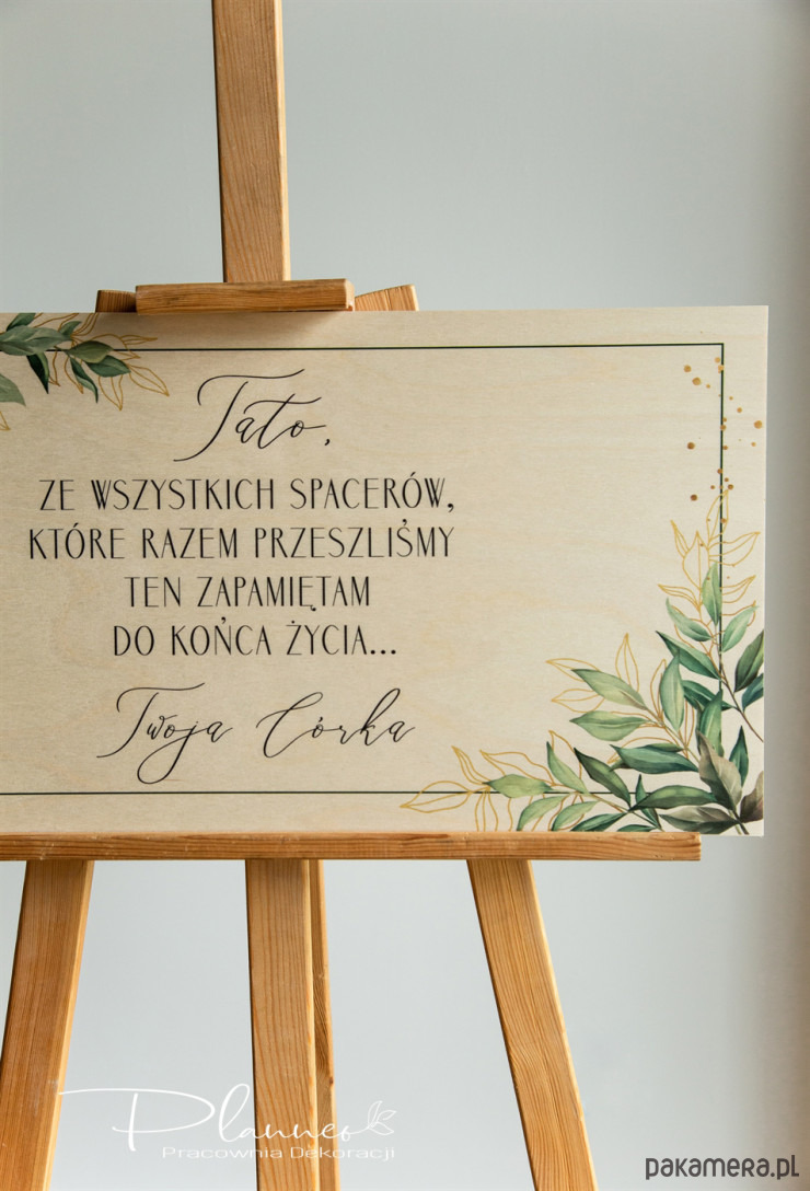 Wyjątkowa drukowana tablica wykonana z wysokiej jakości sklejki o wymiarach 6 mm lub plexi 3 mm. Zawiera tekst dla taty w drodze do ołtarza.