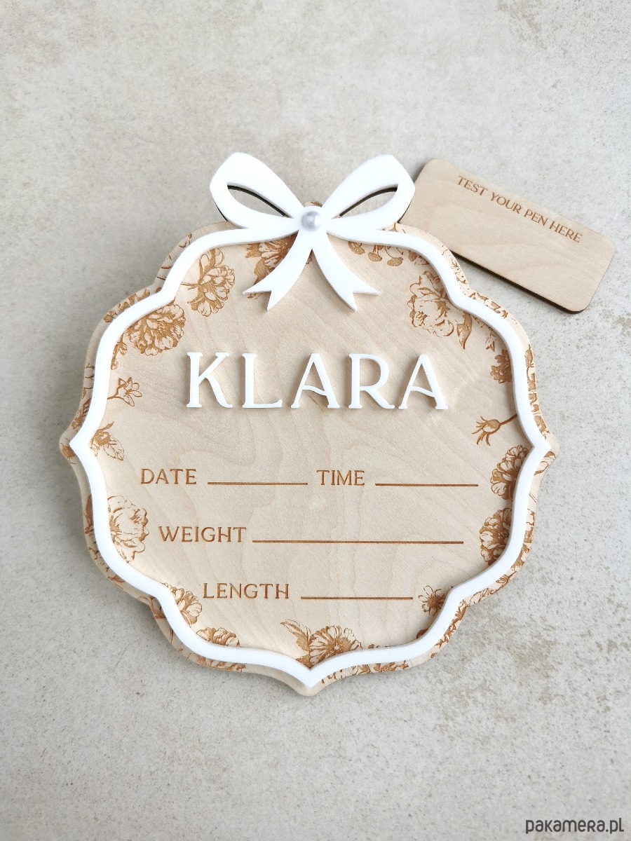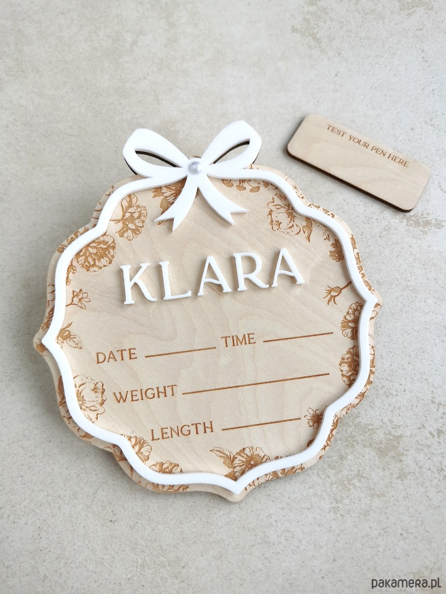 Uczcij narodziny swojego maleństwa w wyjątkowy sposób dzięki personalizowanej drewnianej tabliczce z imieniem, stworzonej jako idealny rekwizyt do pierwszych zdjęć noworodka, obwieszczenia narodzin w szpitalu oraz piękna pamiątka do pokoju dziecięcego.