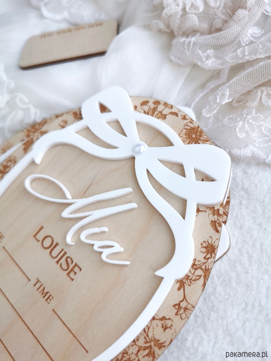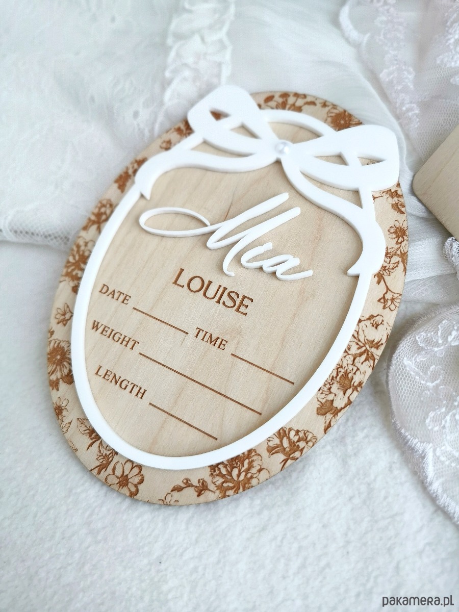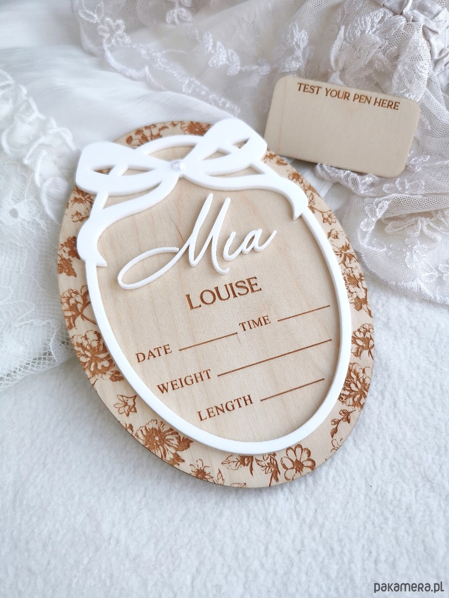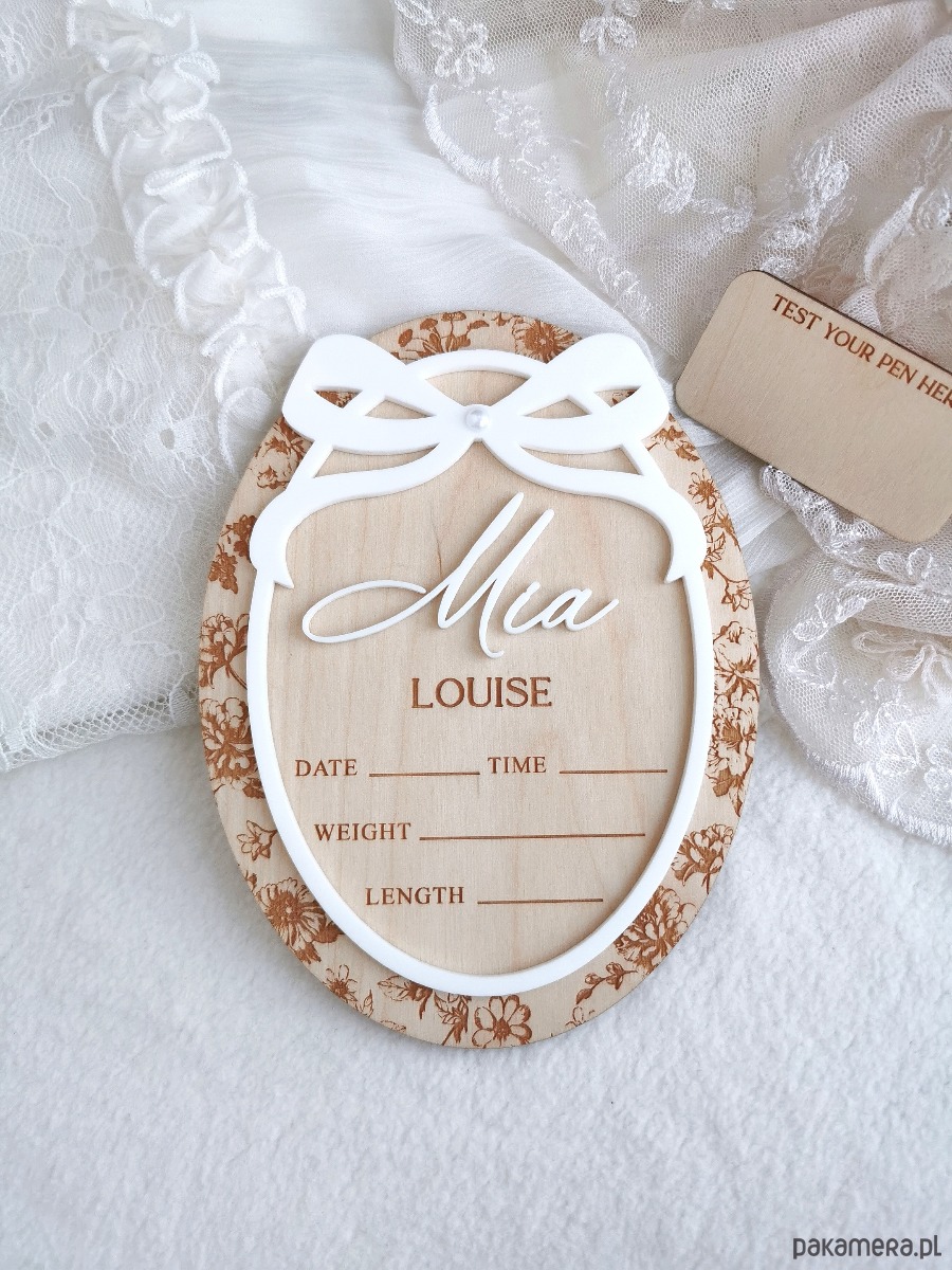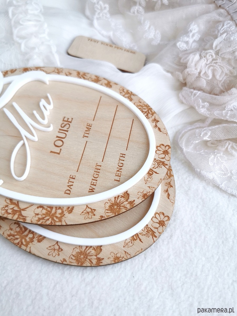 Uczcij narodziny swojego maleństwa w wyjątkowy sposób dzięki personalizowanej drewnianej tabliczce z imieniem, stworzonej jako idealny rekwizyt do pierwszych zdjęć noworodka, obwieszczenia narodzin w szpitalu oraz piękna pamiątka do pokoju dziecięcego.