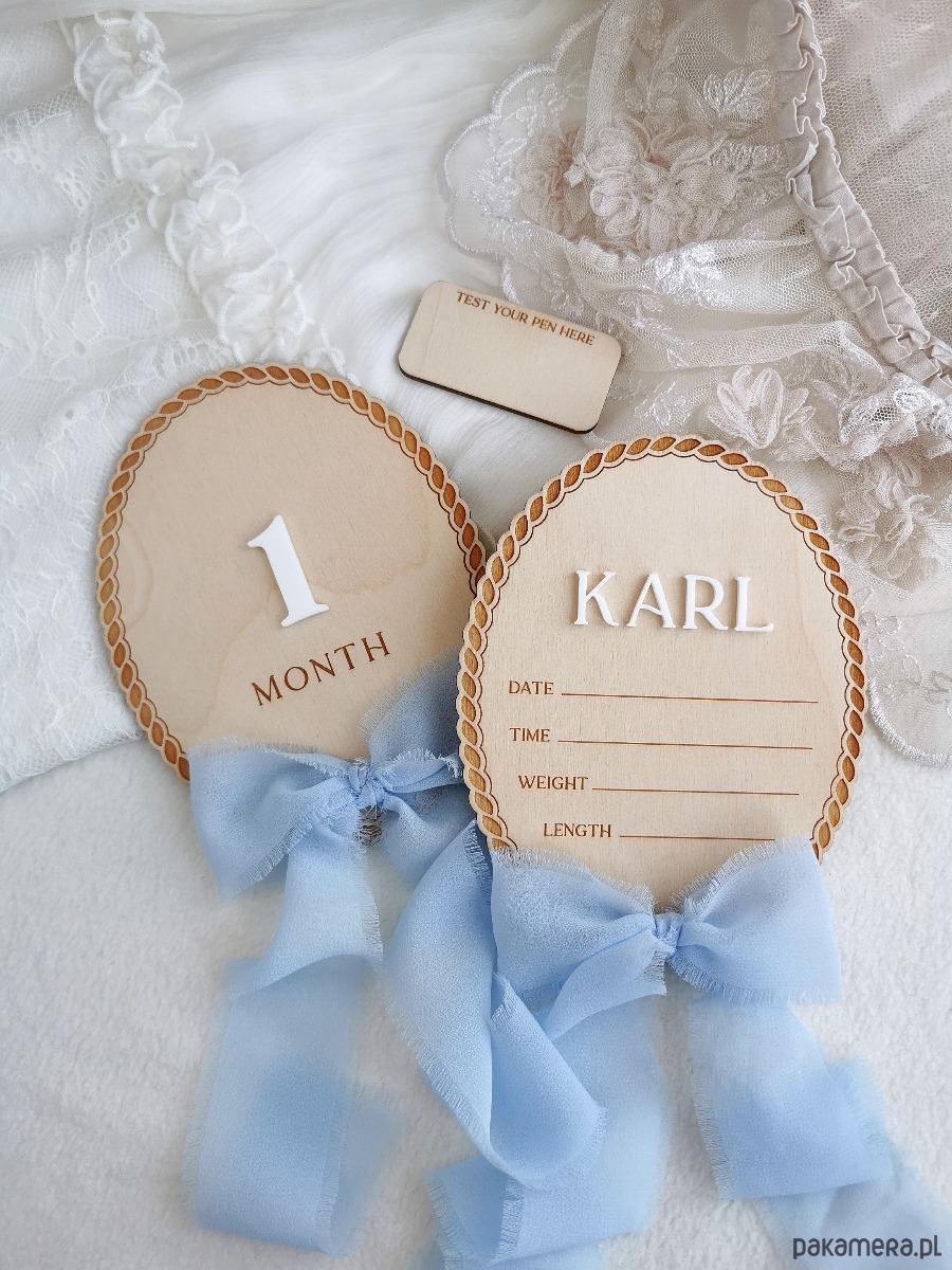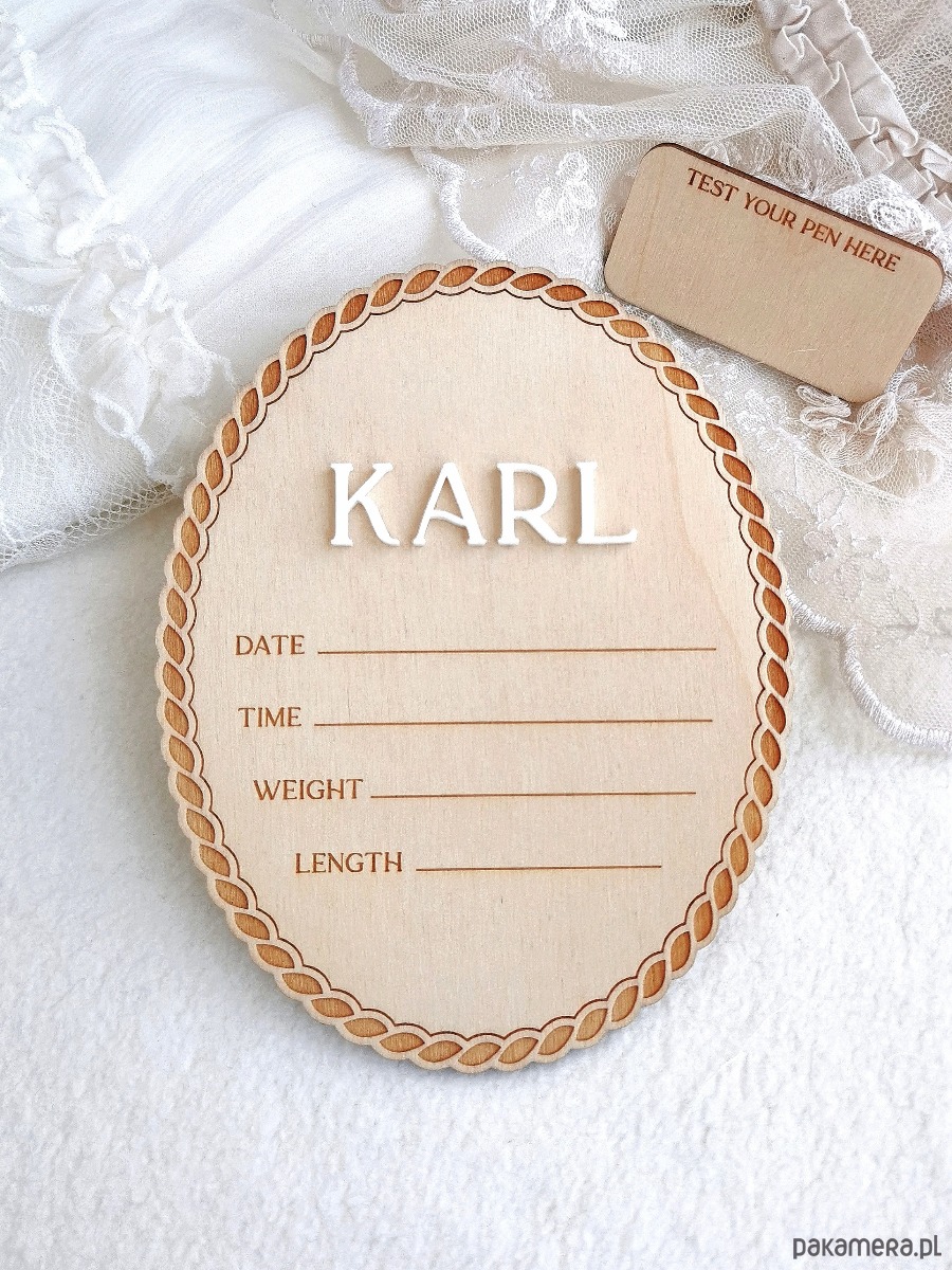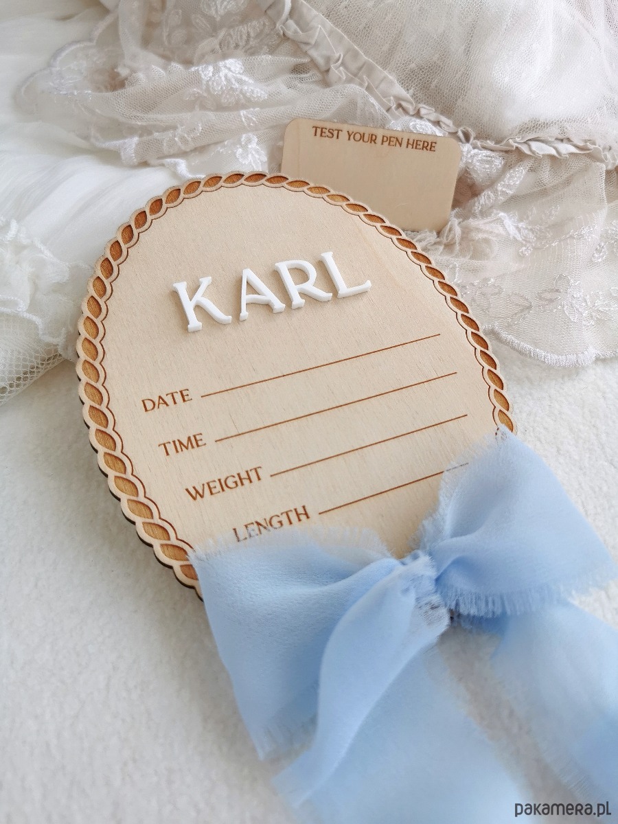 Powitaj swoje maleństwo w wyjątkowy sposób 💕 Ta elegancka, ręcznie wykonana drewniana tabliczka narodzin z imieniem to piękna pamiątka pierwszych chwil życia dziecka. Idealna do zdjęć w szpitalu, sesji noworodkowej oraz jako dekoracja pokoju dziecięcego. Delikatny wzór graweru w połączeniu z imieniem 3D oraz subtelną kokardką tworzy ponadczasową kompozycję.