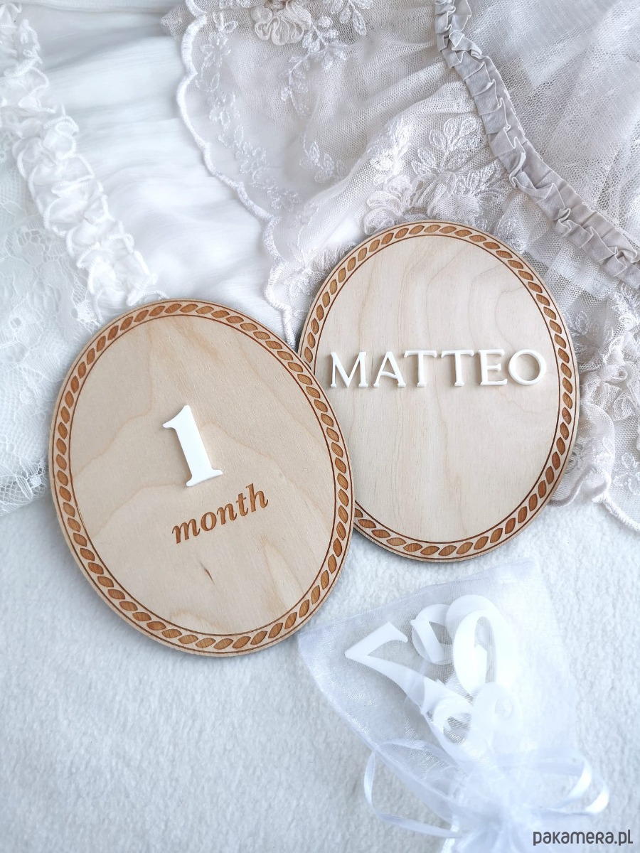 Tabliczka umożliwia samodzielne wpisanie najważniejszych informacji o narodzinach dziecka, dzięki czemu staje się wzruszającą pamiątką na długie lata.