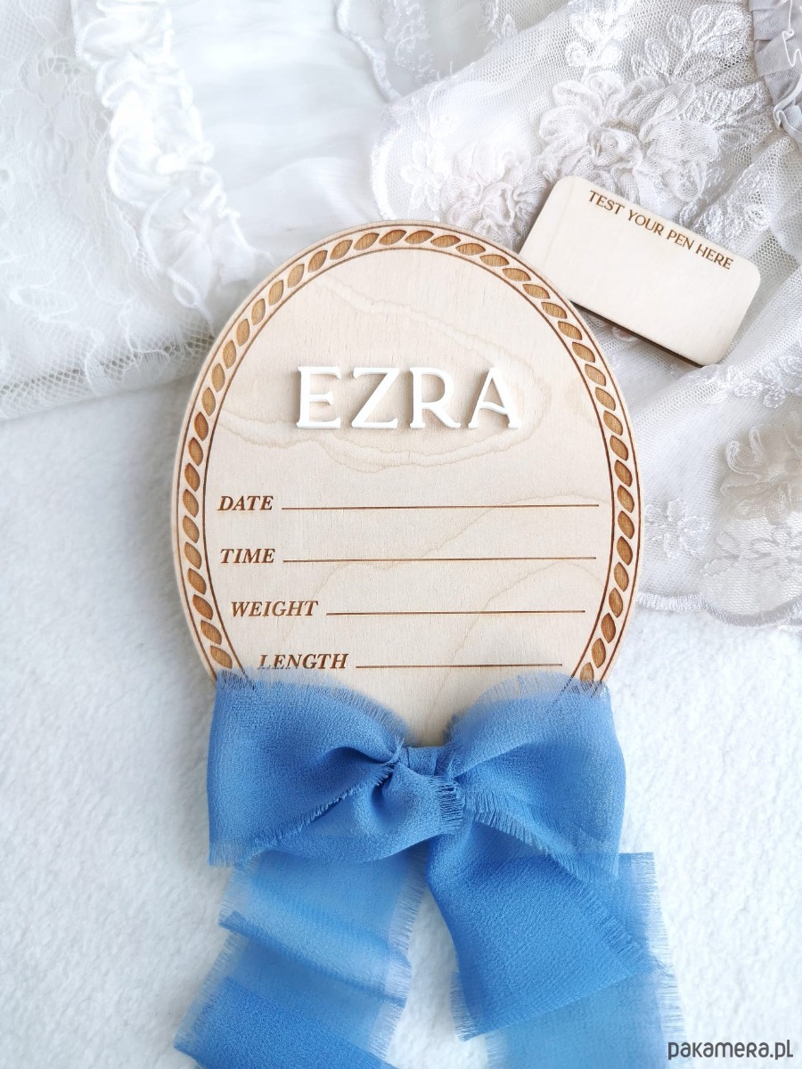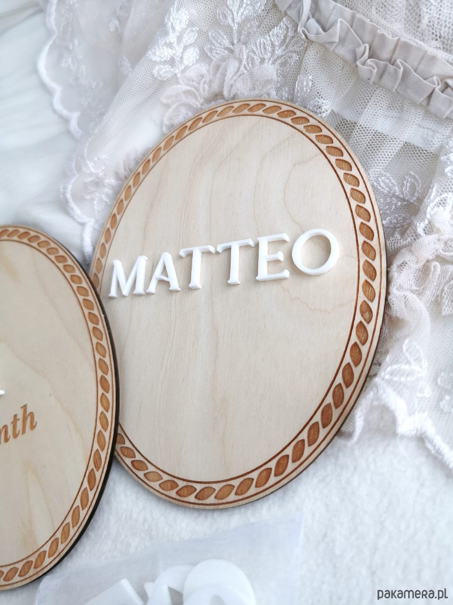 Przywitaj swoje maleństwo w niezwykły sposób 💕 Ta ręcznie wykonana, drewniana tabliczka z imieniem to wyjątkowa pamiątka pierwszych chwil życia dziecka. Doskonale sprawdzi się jako rekwizyt do zdjęć w szpitalu i sesji noworodkowej, a także jako subtelna dekoracja pokoju dziecięcego. Delikatny grawer, przestrzenne imię 3D oraz ozdobna kokardka tworzą harmonijną, ponadczasową całość.