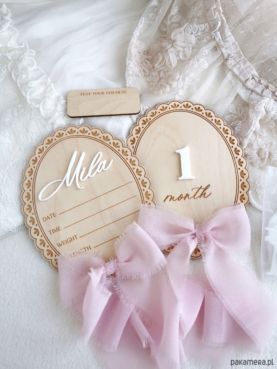 Powitaj swoje maleństwo w wyjątkowy sposób 💕 Ta elegancka, ręcznie wykonana drewniana tabliczka narodzin z imieniem to piękna pamiątka pierwszych chwil życia dziecka. Idealna do zdjęć w szpitalu, sesji noworodkowej oraz jako dekoracja pokoju dziecięcego. Delikatny wzór graweru w połączeniu z imieniem 3D oraz subtelną kokardką tworzy ponadczasową, romantyczną kompozycję — szczególnie uwielbianą przez mamy dziewczynek 🎀