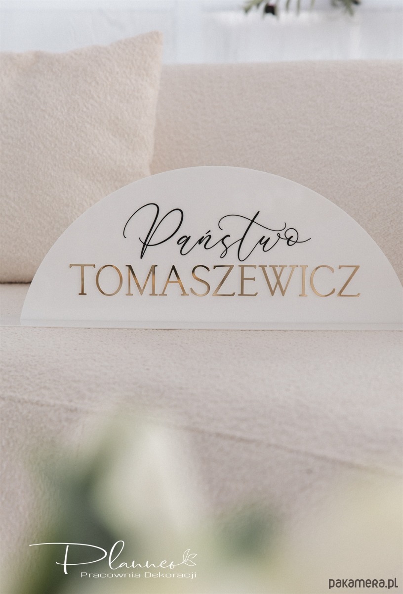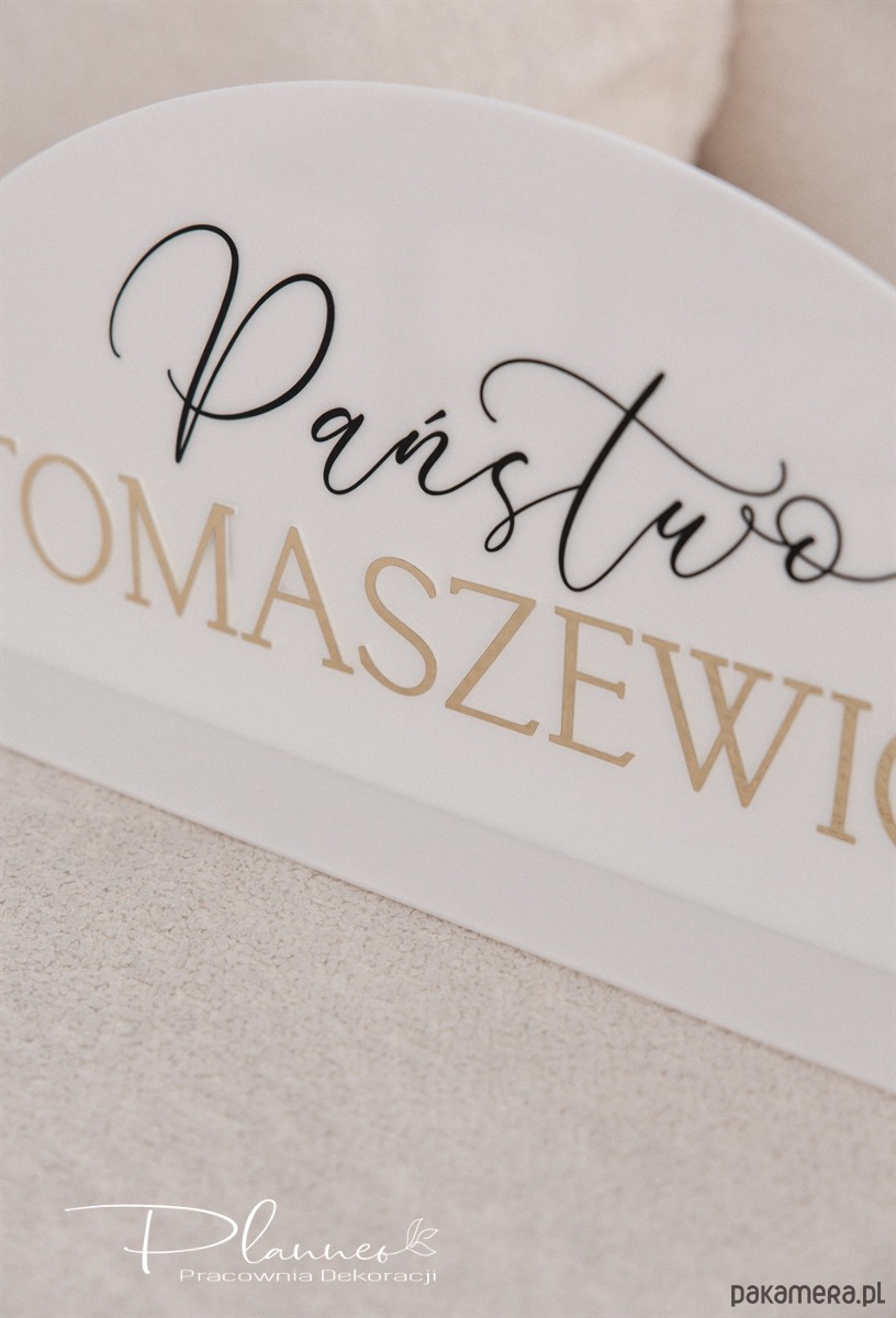 Tabliczka z nazwiskiem na stół Pary Młodej Państwo