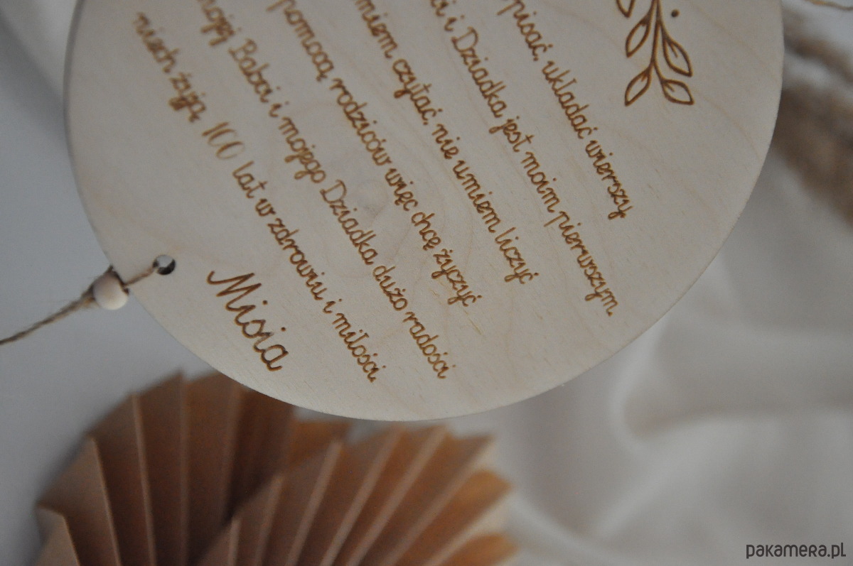 Przedmiotem oferty jest tabliczka z wierszykiem wykonana z jasnej klejki grub. 3 mm a napisy wygrawerowane.