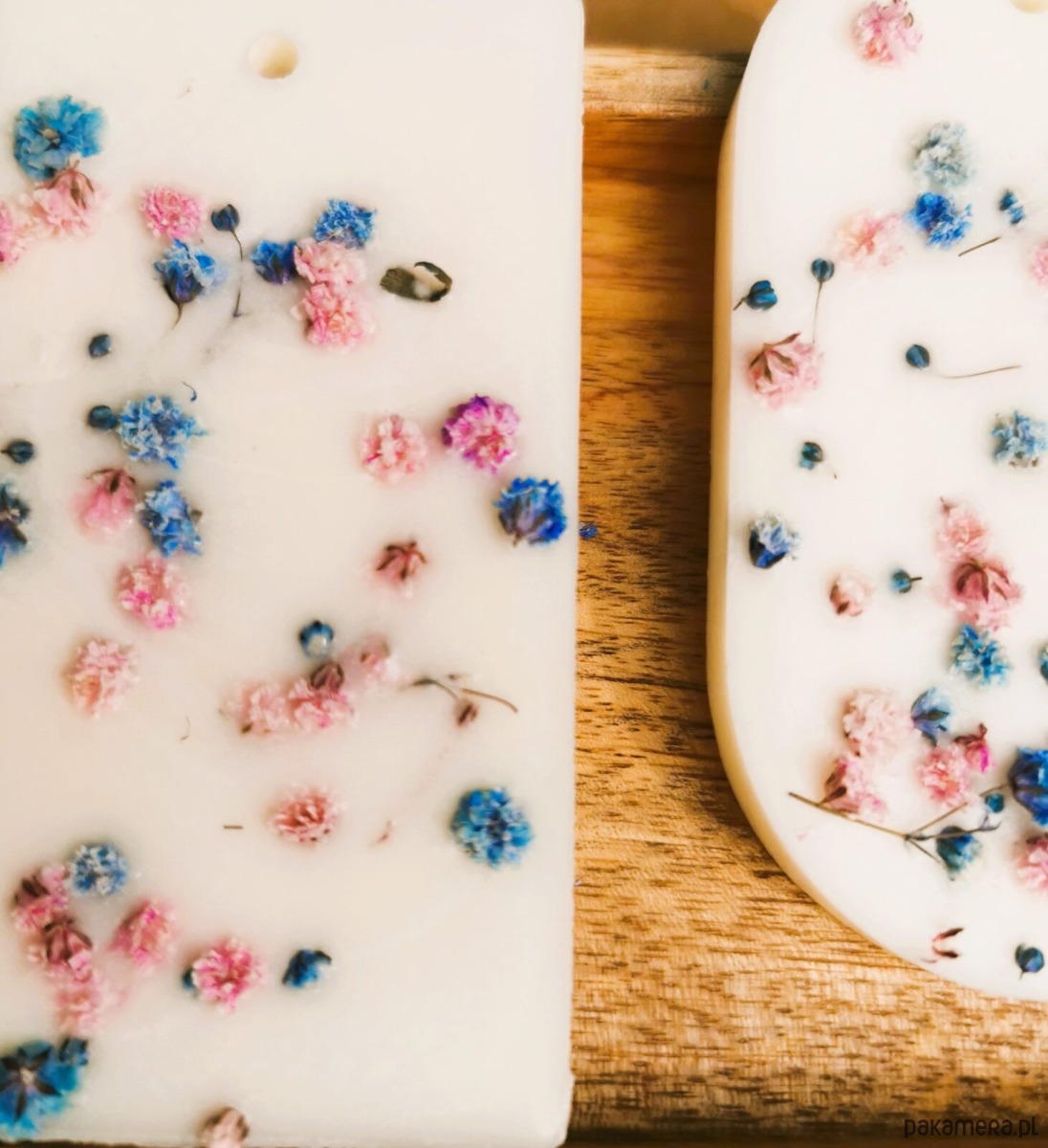 Skład: wosk sojowy, olejki eteryczne, suszone płatki kwiatów*.