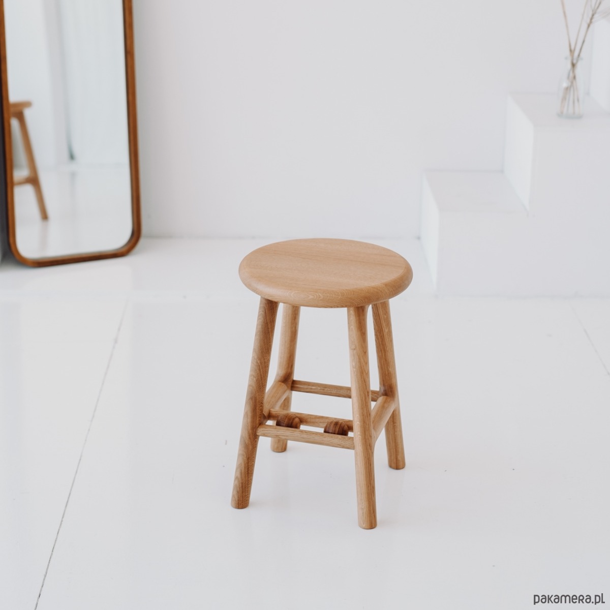 Okrągły taboret OLIO to mebel stworzony z myślą o codziennym użytkowaniu, ale bez kompromisów w kwestii estetyki. Łączy w sobie miękką linię zaokrąglonych krawędzi z twardym charakterem litego drewna dębowego. Idealny jako dodatkowe siedzisko w kuchni, przedpokoju, albo kwietnik.