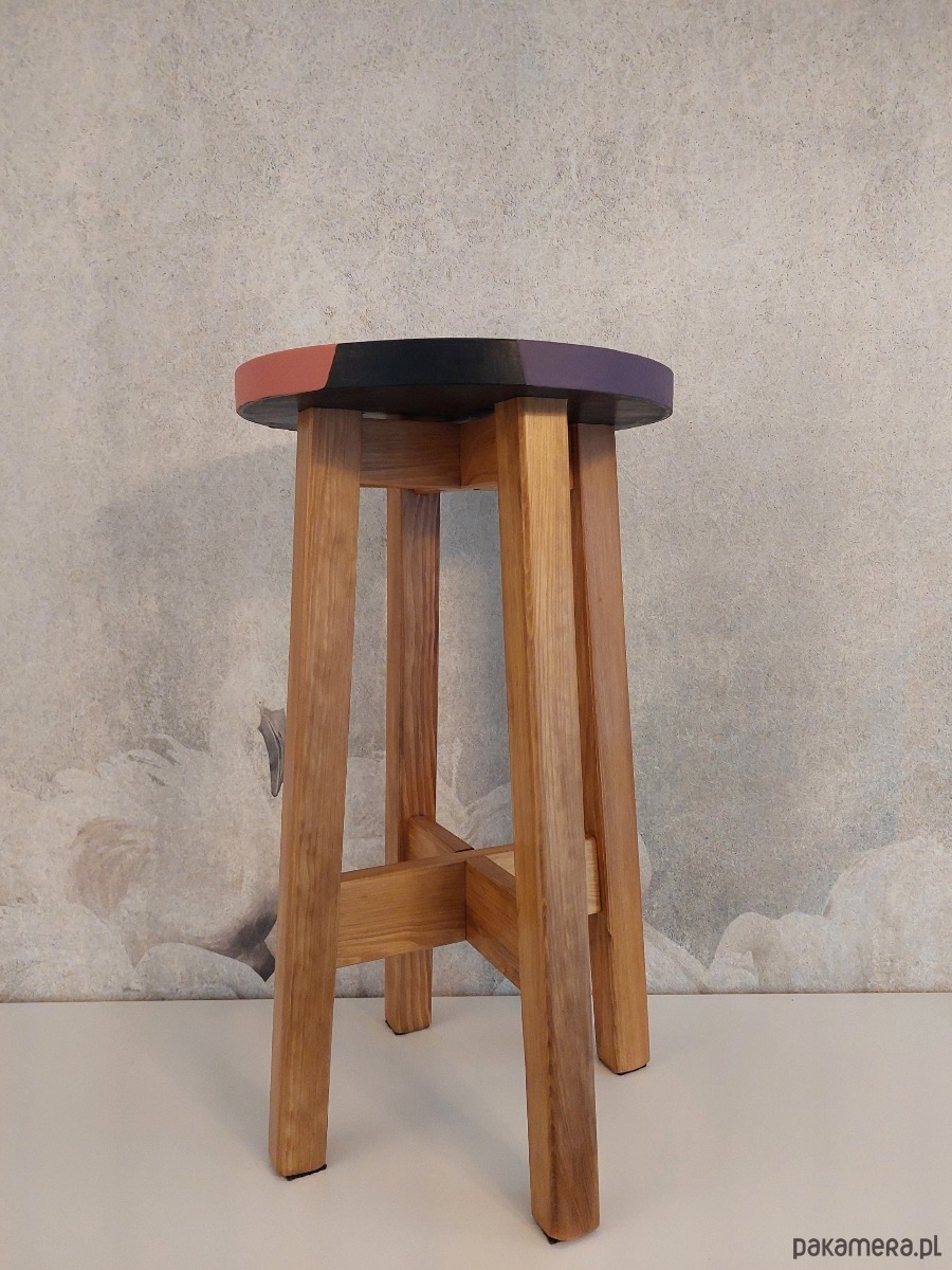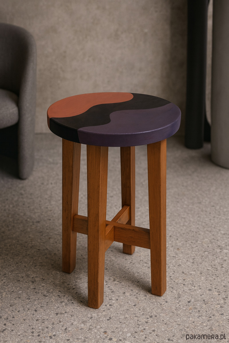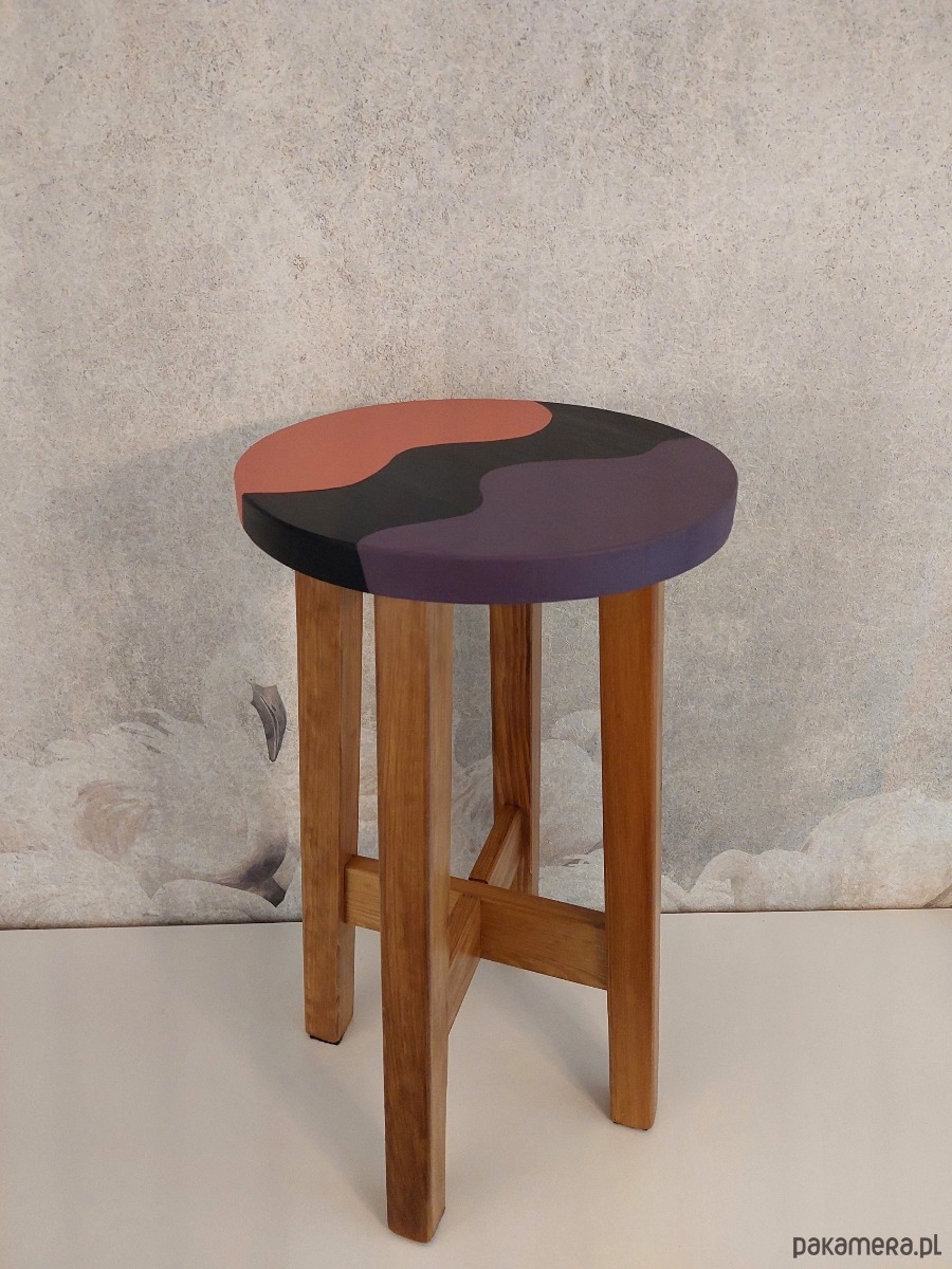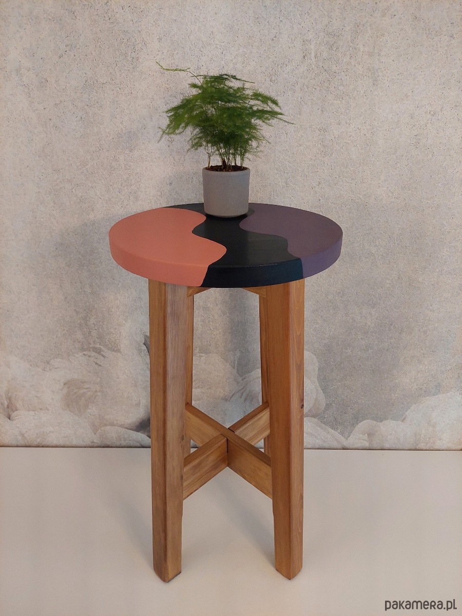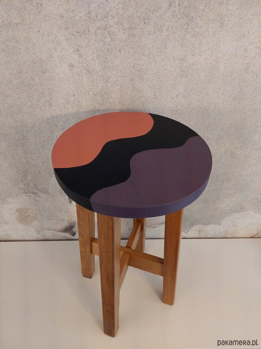 Taboret z litego drewna z wyjątkowymi ręcznie malowanymi akcentami