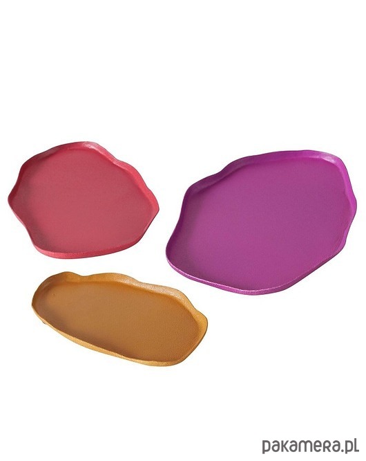Komplet 3 tac ozdobnych wielokolorowych. Zostały wykonane z metalu i mają różne kształty. Będą wesołą dekoracją pomieszczenia.