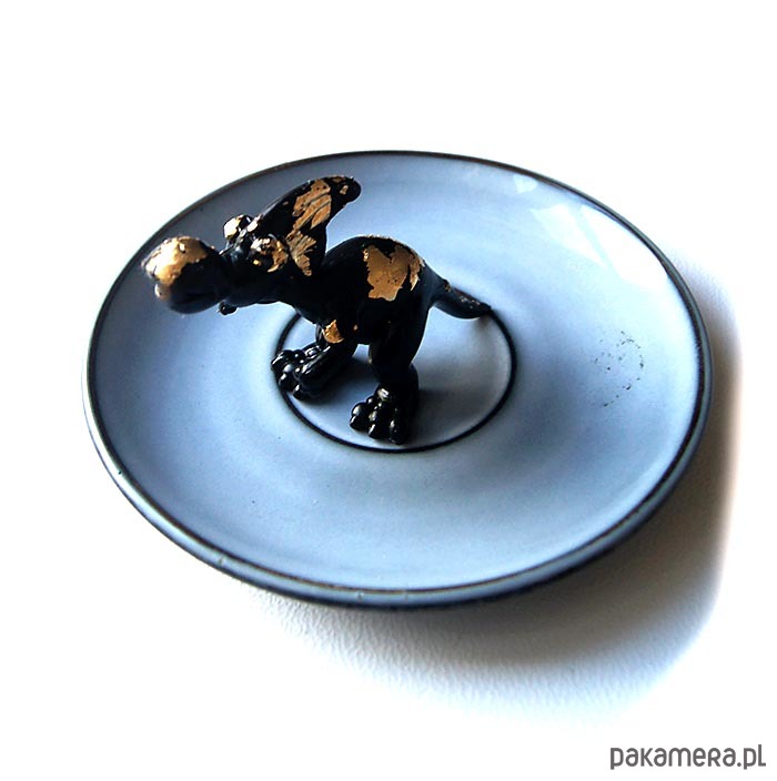 Porcelanowa taca na biżuterię o średnicy 15 cm.