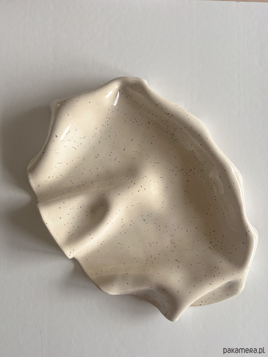WAVY no. 1 to ręcznie formowana taca ceramiczna stworzona z myślą o dzieleniu się przekąskami i dobrymi momentami. Każdy egzemplarz powstaje w całości manualnie, dzięki czemu jest niepowtarzalny — delikatne różnice w kształcie i fakturze są naturalnym śladem pracy rąk, a nie masowej produkcji.