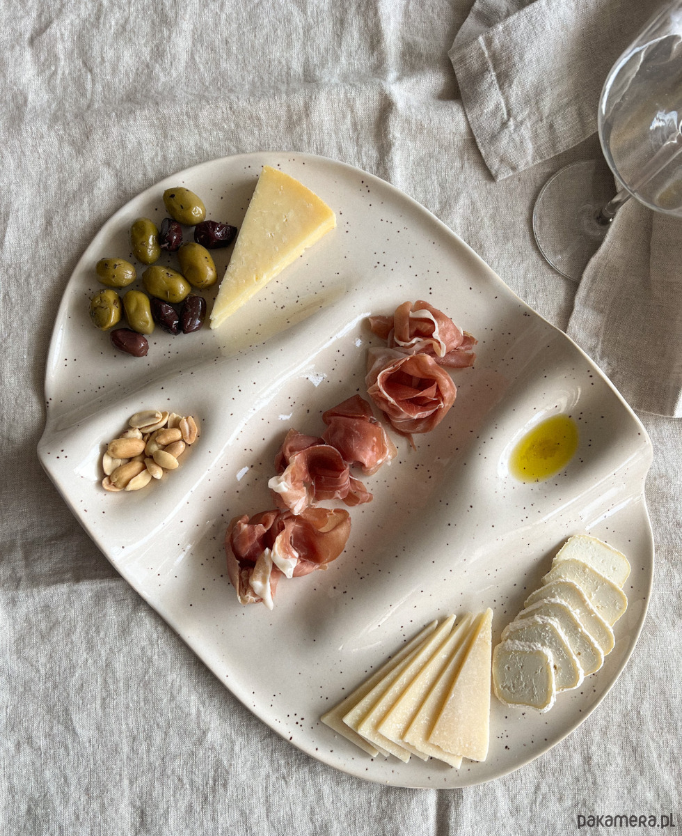 Taca idealnie sprawdzi się podczas spotkań z przyjaciółmi: na oliwki, orzechy, sery, owoce czy drobne przekąski, które zachęcają do wspólnego sięgania i rozmów przy stole.