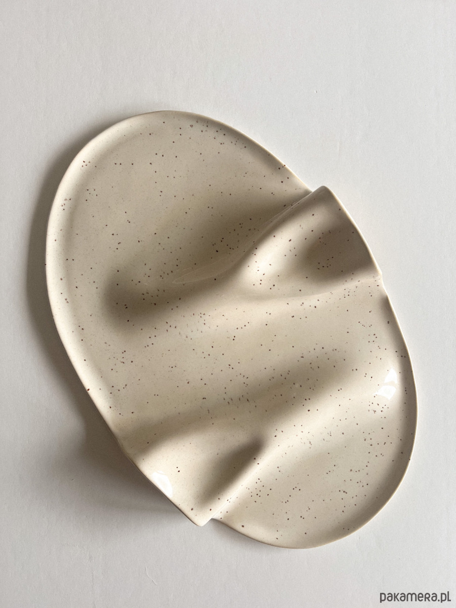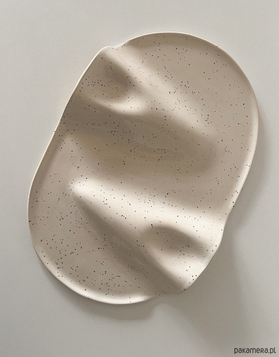 WAVY no. 2 to ręcznie formowana taca ceramiczna stworzona z myślą o dzieleniu się przekąskami i dobrymi momentami. Każdy egzemplarz powstaje w całości manualnie, dzięki czemu jest niepowtarzalny — delikatne różnice w kształcie i fakturze są naturalnym śladem pracy rąk, a nie masowej produkcji.