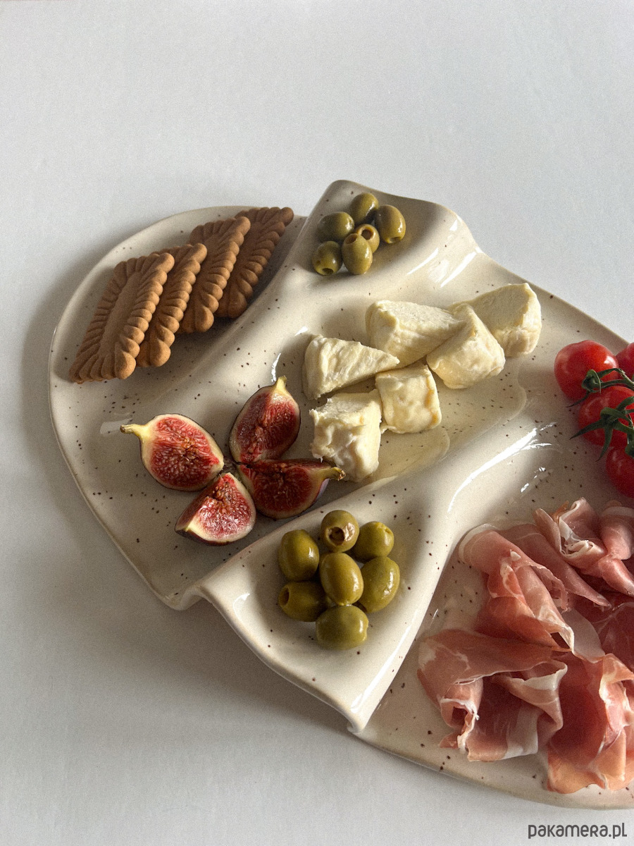 WAVY no. 2 to ręcznie formowana taca ceramiczna stworzona z myślą o dzieleniu się przekąskami i dobrymi momentami. Każdy egzemplarz powstaje w całości manualnie, dzięki czemu jest niepowtarzalny — delikatne różnice w kształcie i fakturze są naturalnym śladem pracy rąk, a nie masowej produkcji.