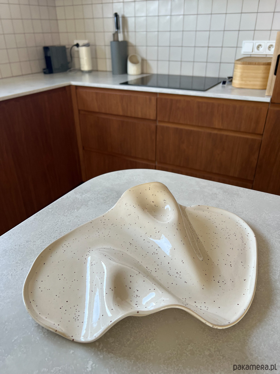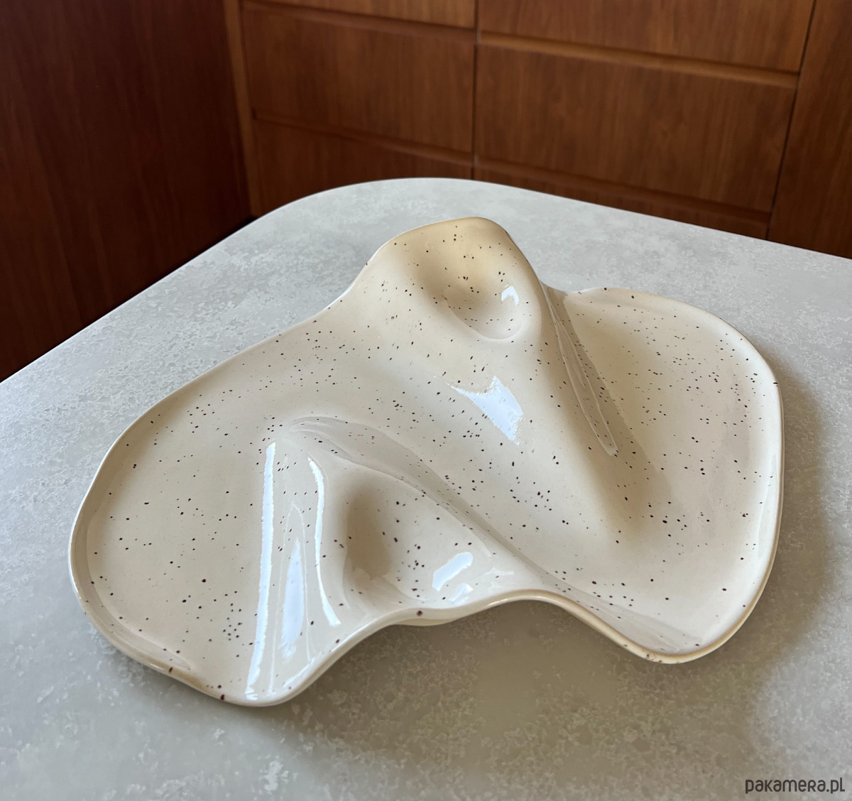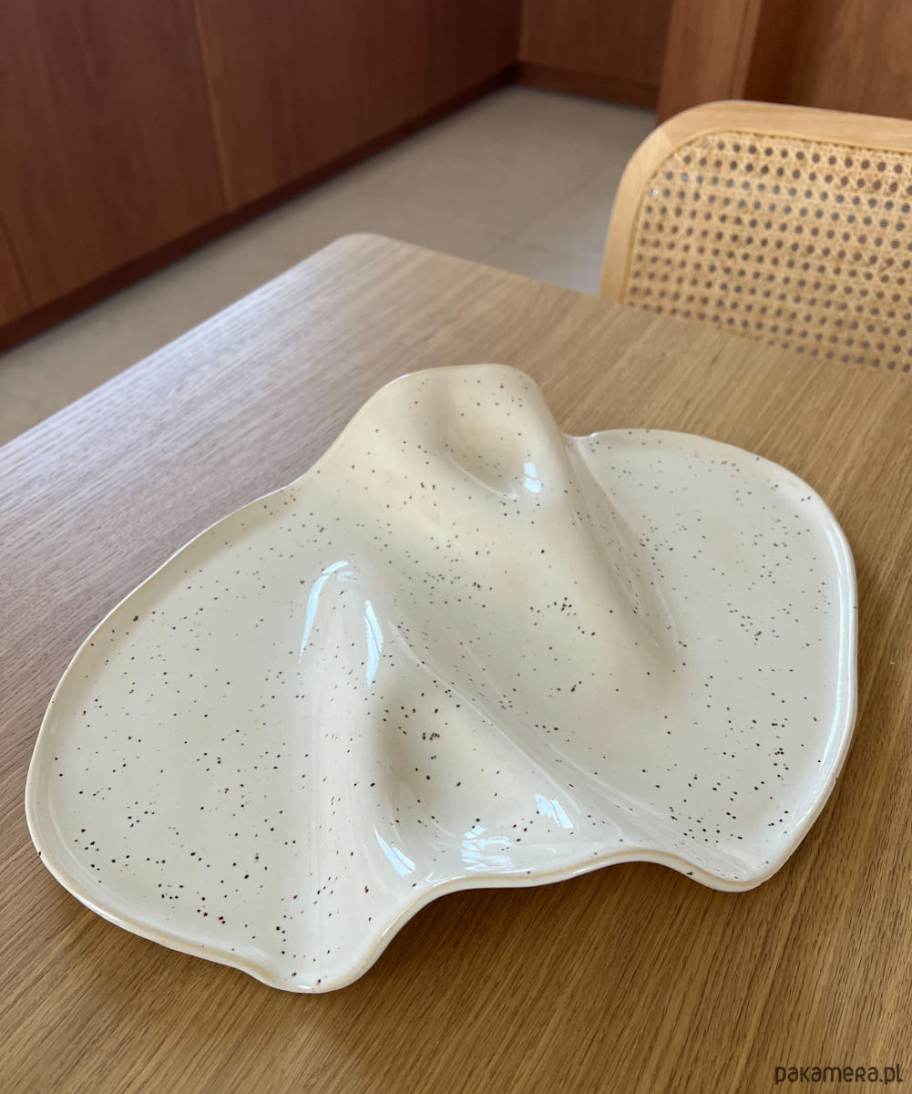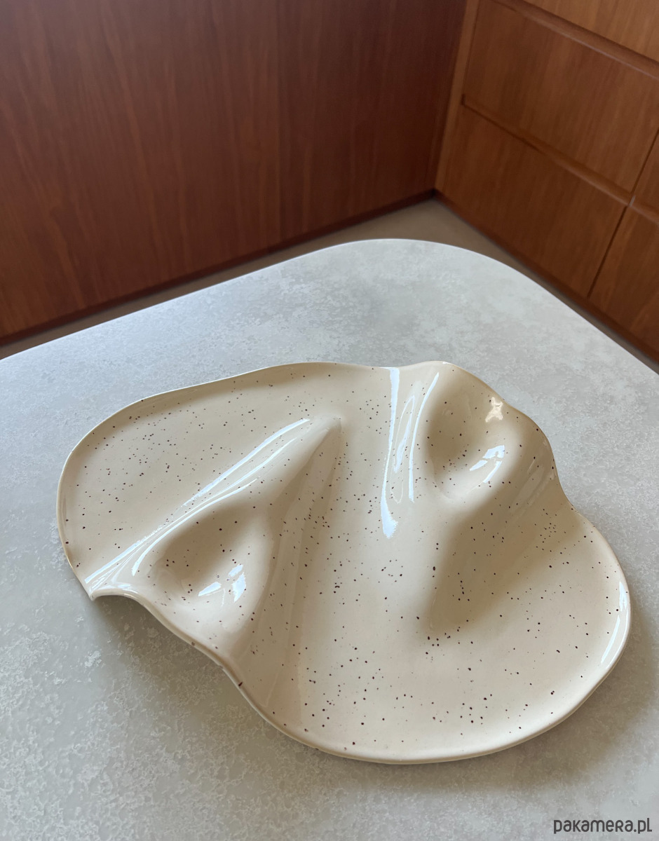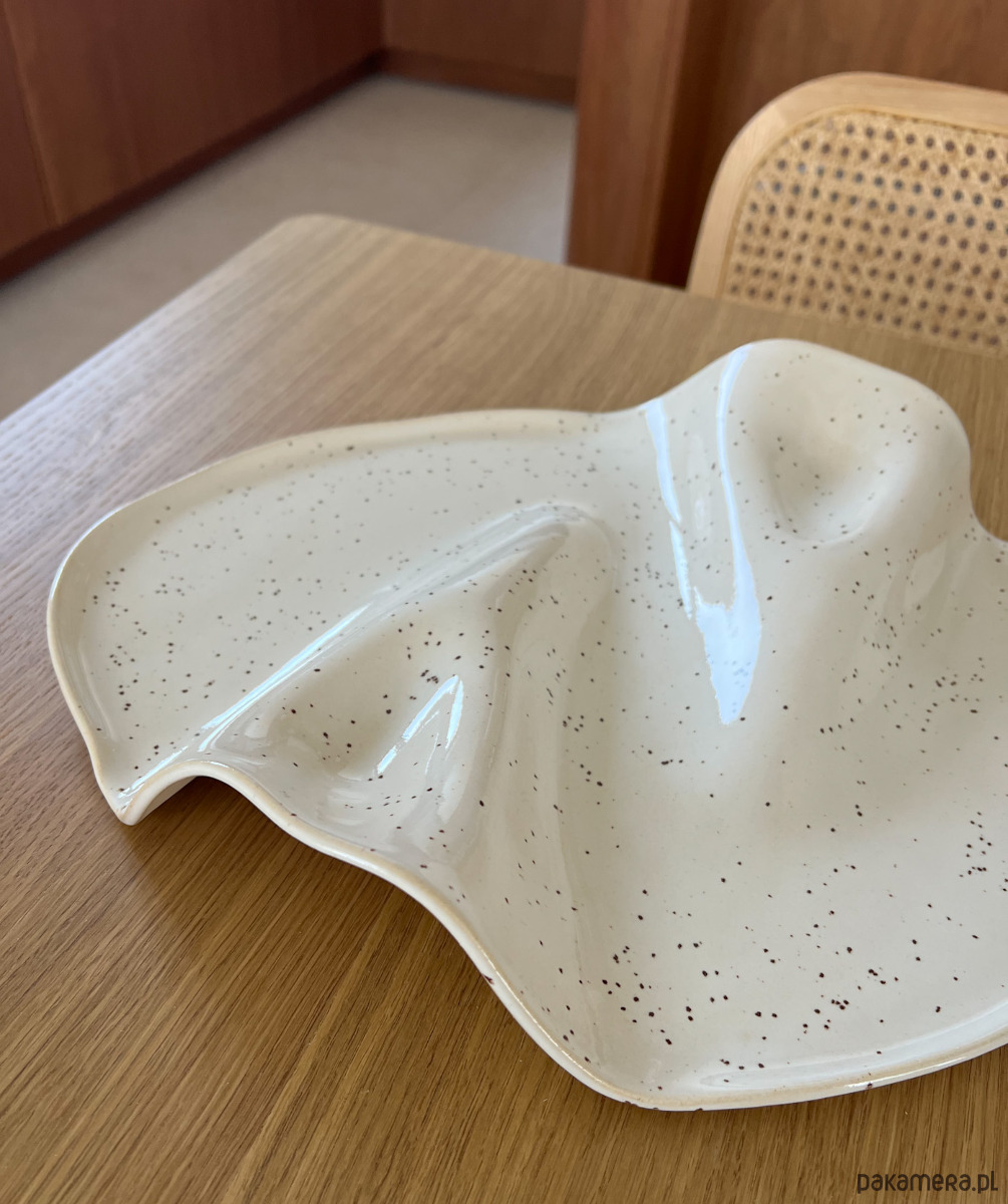 WAVY no. 8 to ręcznie formowana taca ceramiczna stworzona z myślą o dzieleniu się przekąskami i dobrymi momentami. Każdy egzemplarz powstaje w całości manualnie, dzięki czemu jest niepowtarzalny — delikatne różnice w kształcie i fakturze są naturalnym śladem pracy rąk, a nie masowej produkcji.