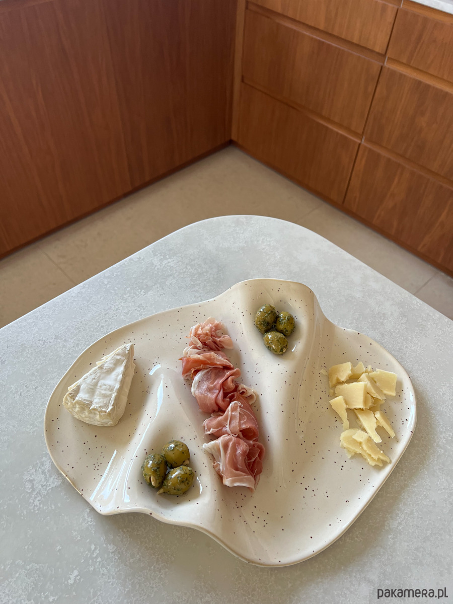 Taca idealnie sprawdzi się podczas spotkań z przyjaciółmi: na oliwki, orzechy, sery, owoce czy drobne przekąski, które zachęcają do wspólnego sięgania i rozmów przy stole.