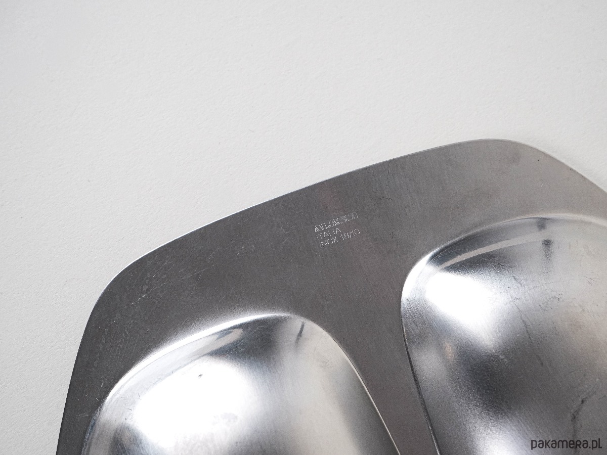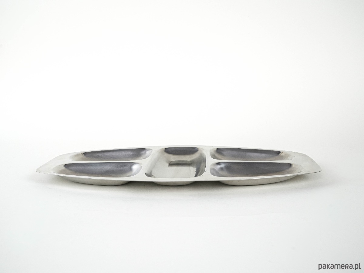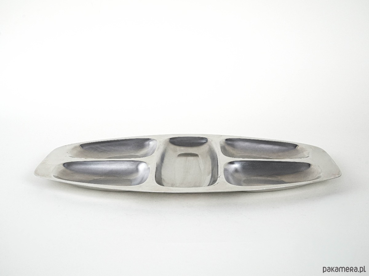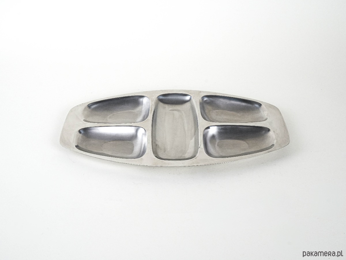 Wykonana z wysokiej jakości stali nierdzewnej INOX, charakterystycznej dla marki ALESSI. Posiada pięć oddzielnych przegród, idealnych do serwowania przekąsek, przystawek czy owoców. Minimalistyczny, funkcjonalny design typowy dla włoskiego wzornictwa tamtego okresu. Ponadczasowy element w stylu Mid Century Modern.