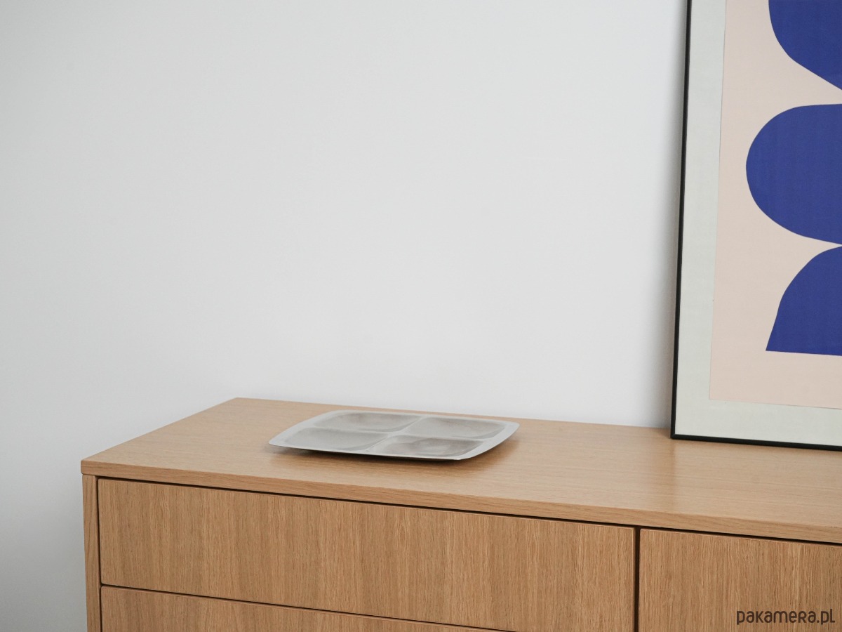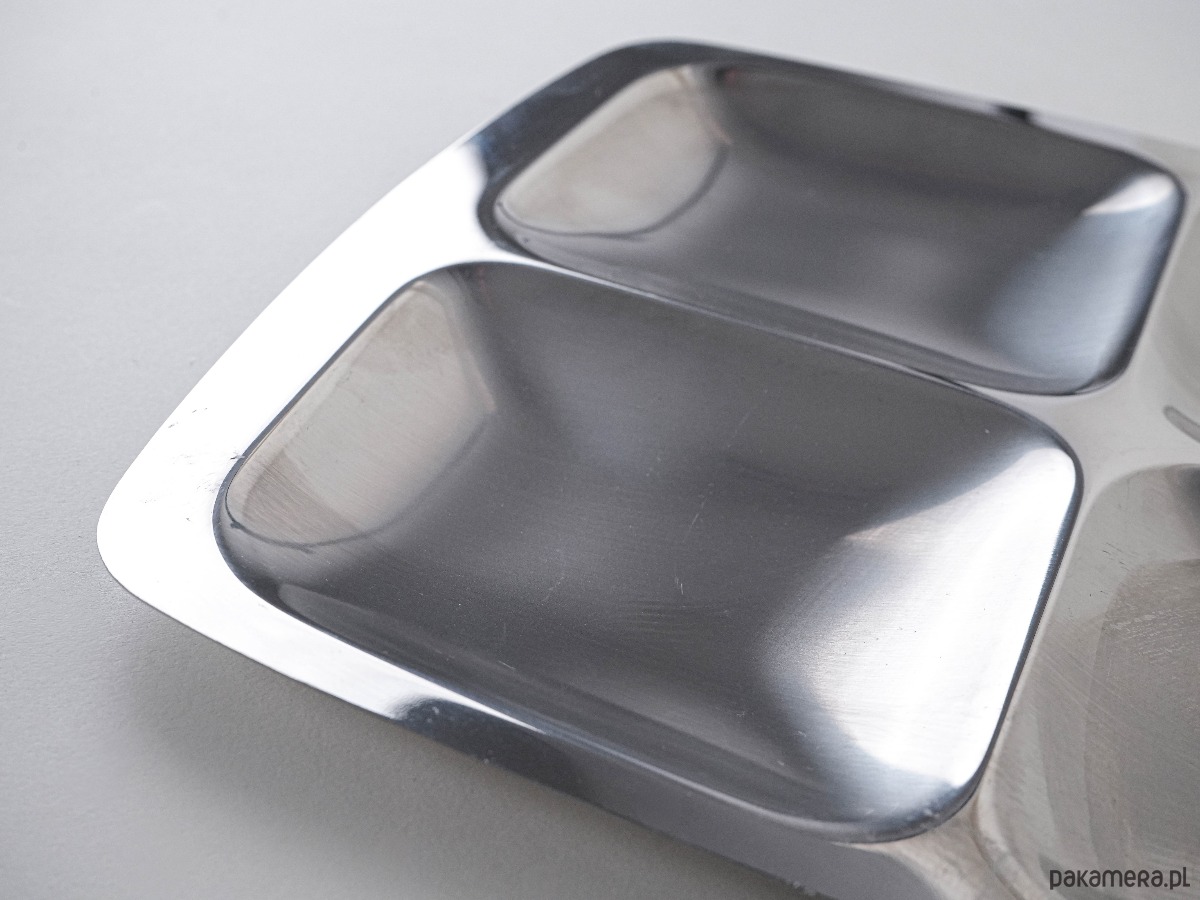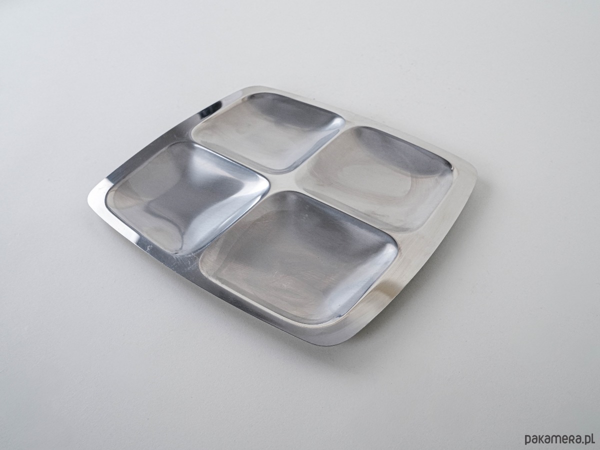 Wykonana z wysokiej jakości stali nierdzewnej, w formie kwadratowej z czterema głębokimi przegródkami. Prosty, funkcjonalny design w stylu Mid Century Modern sprawia, że świetnie sprawdzi się do serwowania przekąsek, owoców czy dodatków. Minimalizm i geometryczna forma nadają jej ponadczasowego charakteru.