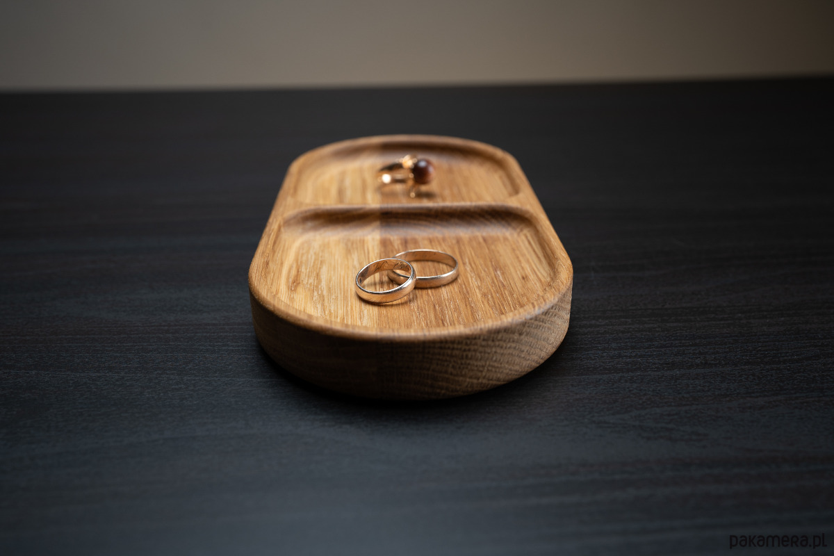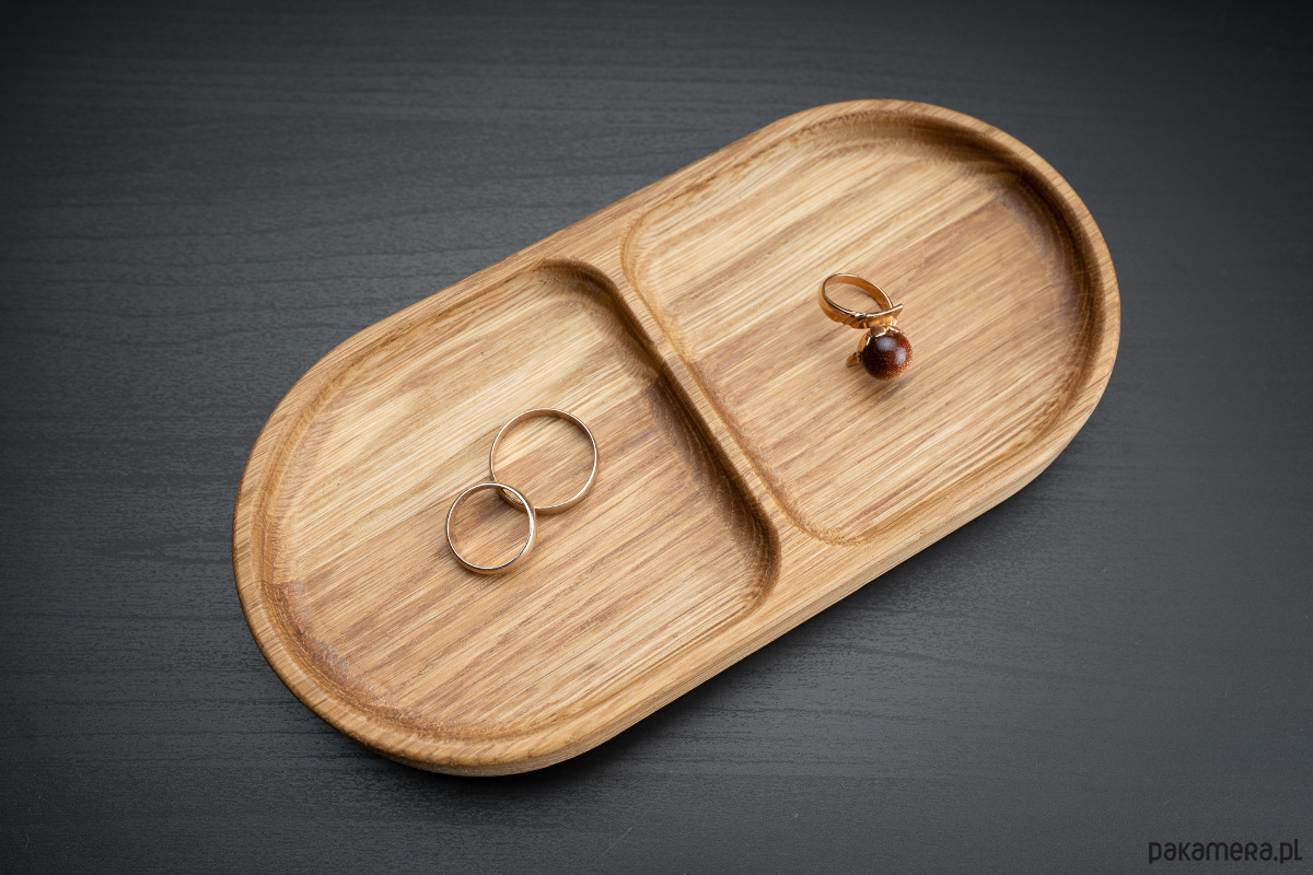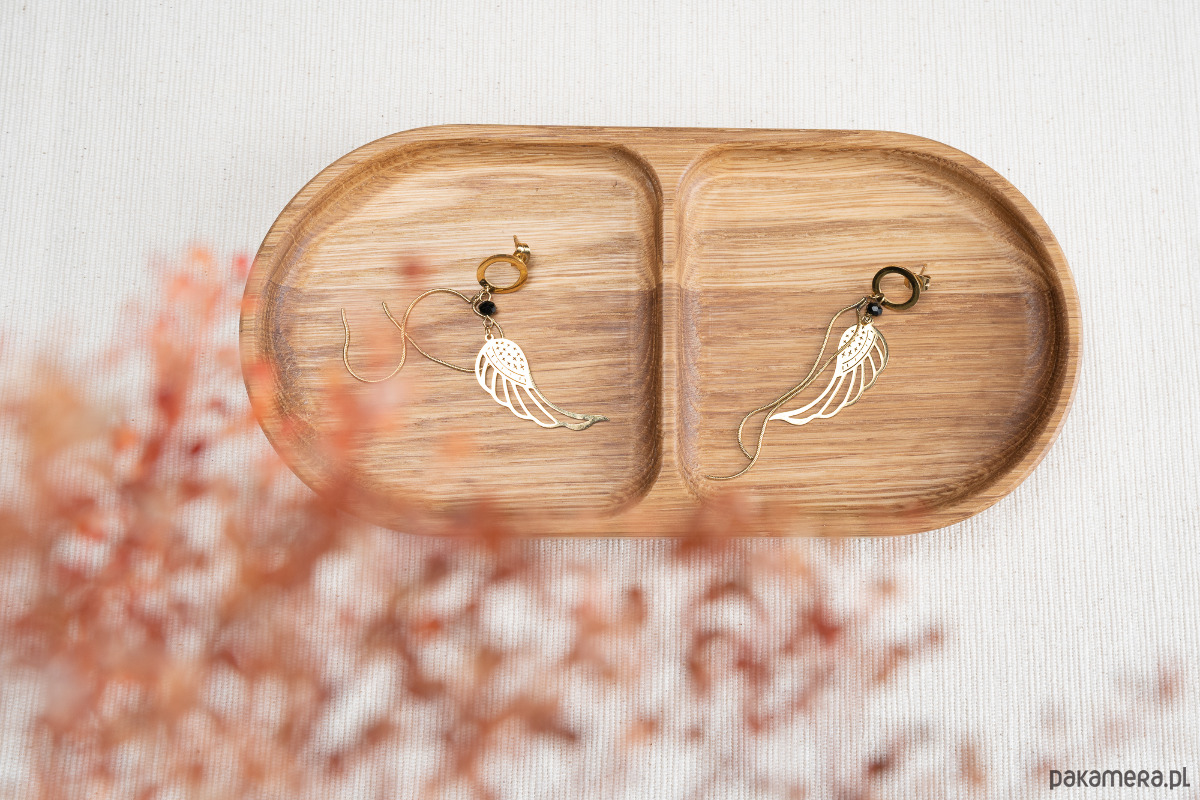 Dwie delikatne przegrody pozwalają uporządkować biżuterię – łańcuszki, pierścionki, kolczyki – tak, by każda rzecz miała swoje miejsce.