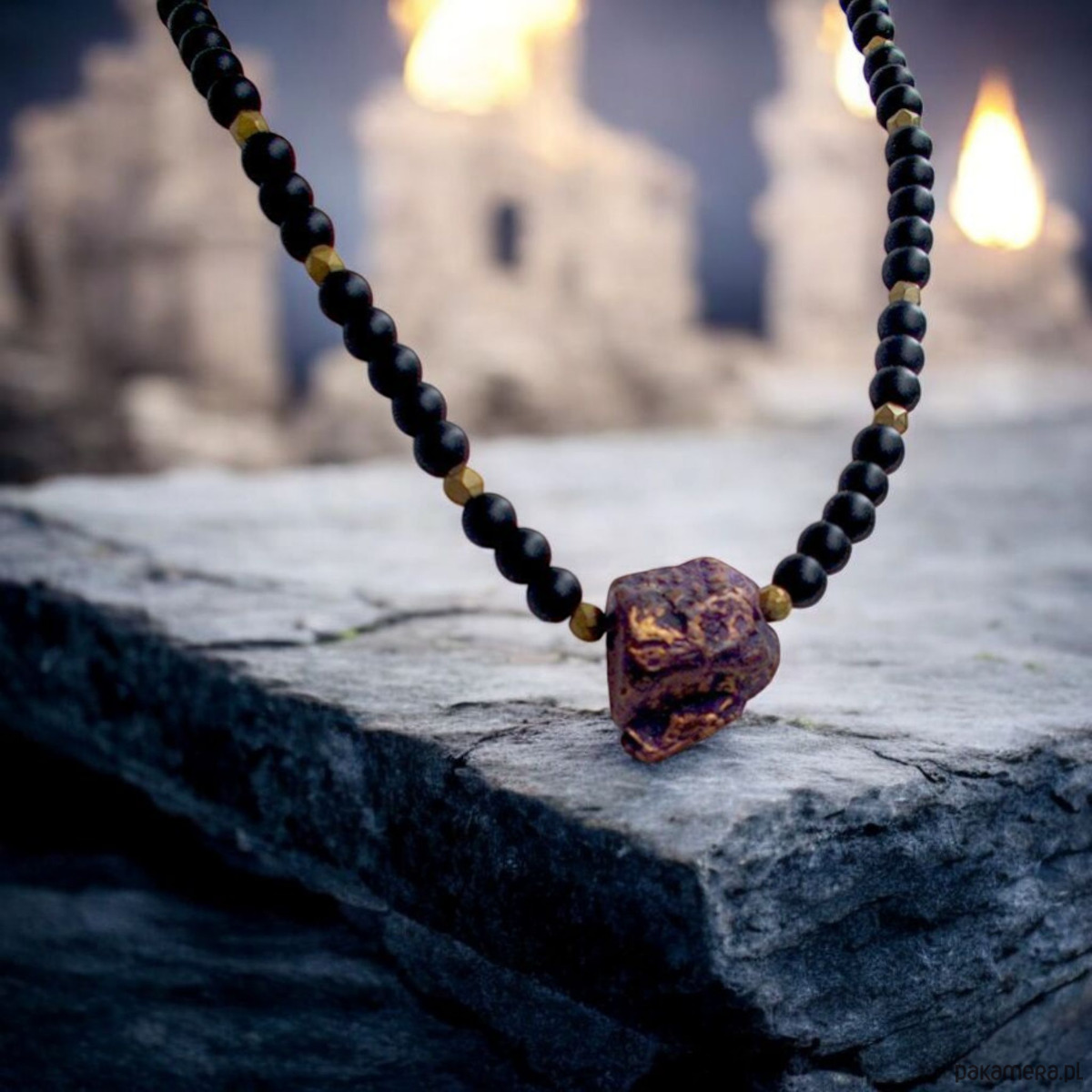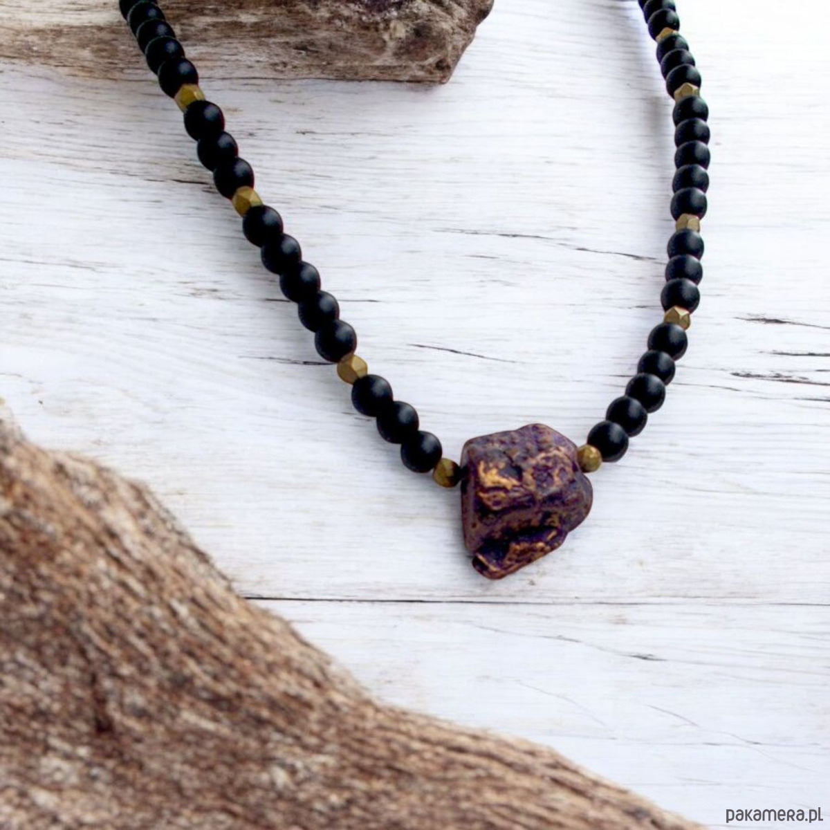Oryginalny naszyjnik w ciemnych kolorach z dużym kamieniem