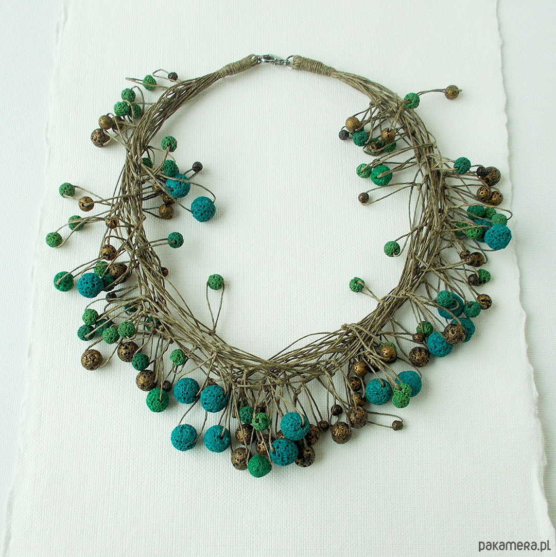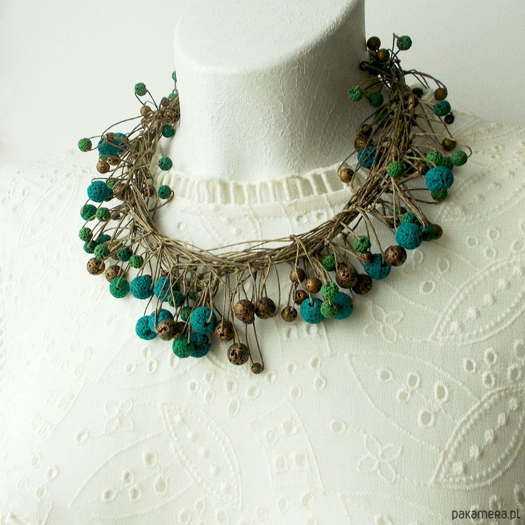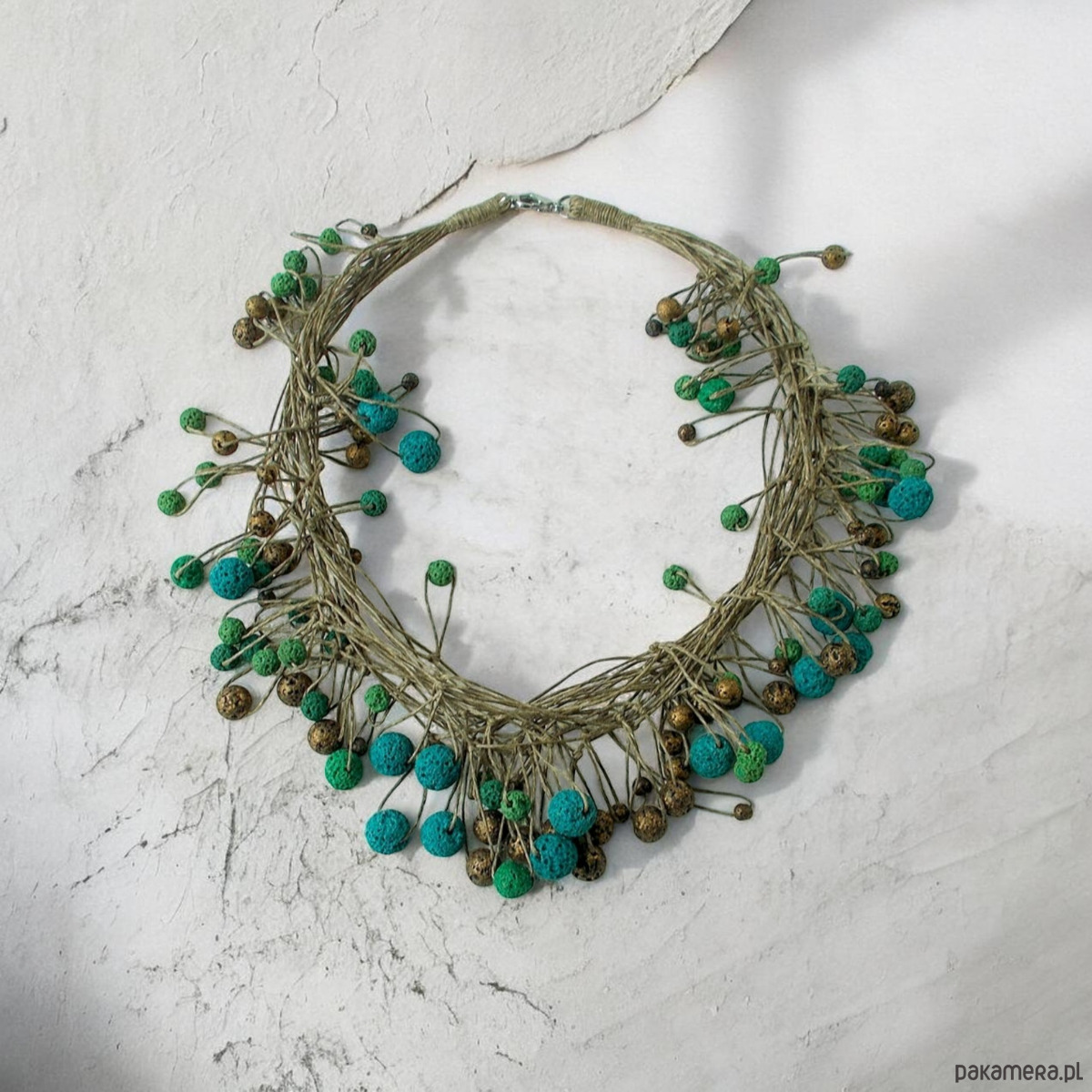 Oryginalny, duży i lekki naszyjnik na bazie naturalnego lnu
