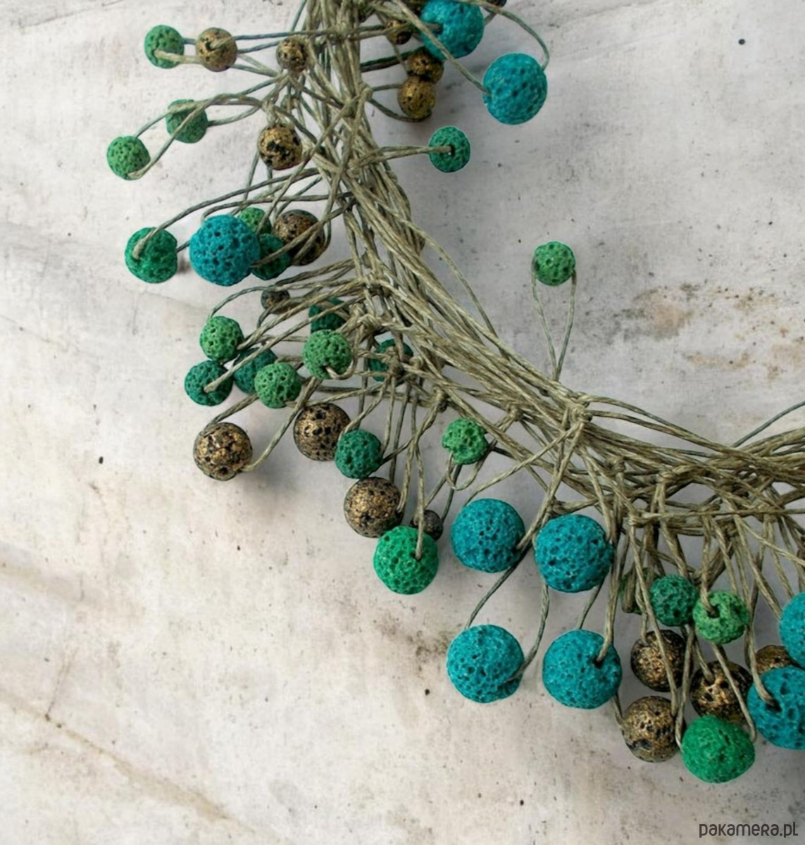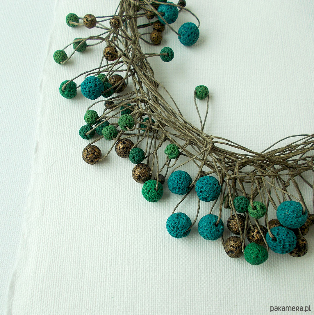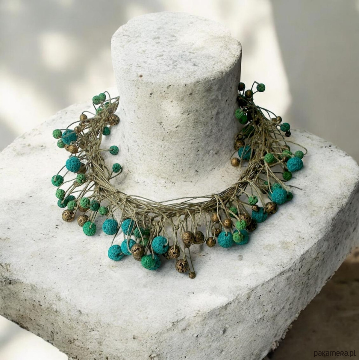 Oryginalny, duży i lekki naszyjnik na bazie naturalnego lnu