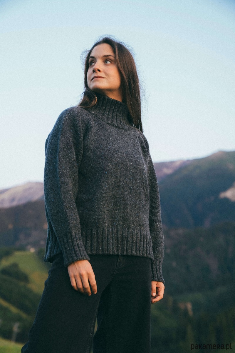 Kolejna perełka w naszej kolekcji. TAJRA to ciepły sweter wykonany z naprawdę unikalnej przędzy, stworzonej wyłącznie dla naszej marki – wełny merino z kolorowymi nepsami (kontrastowymi wtrąceniami). Będzie Twoją przytulną przystanią w mroźne dni.