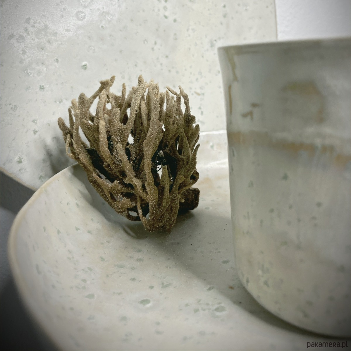 Szkliwo swoją kolorystyką nawiązuje do kryształów soli morskiej osadzającej się na powierzchni kamieni.