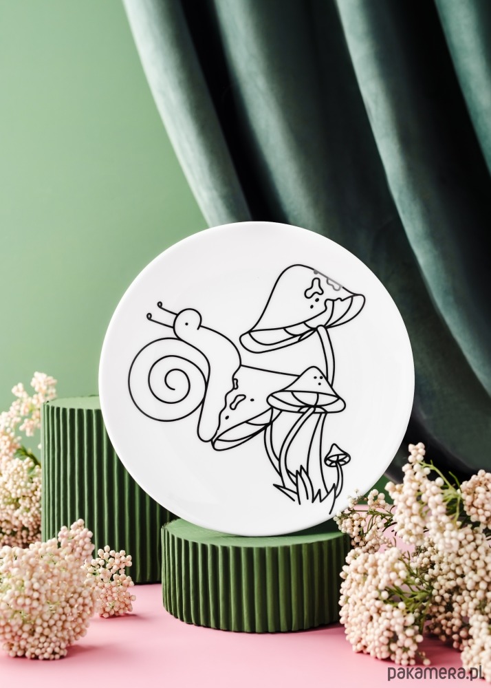 Talerz deserowy dekorowany ręcznie według autorskiego projektu.