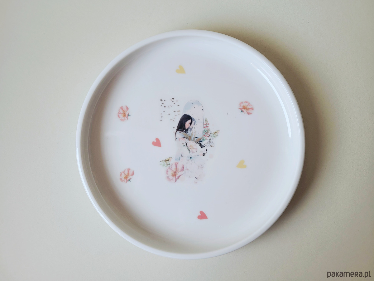 Unikatowy talerz śniadaniowy, z autorskim, zaprojektowanym przeze mnie kolażem.