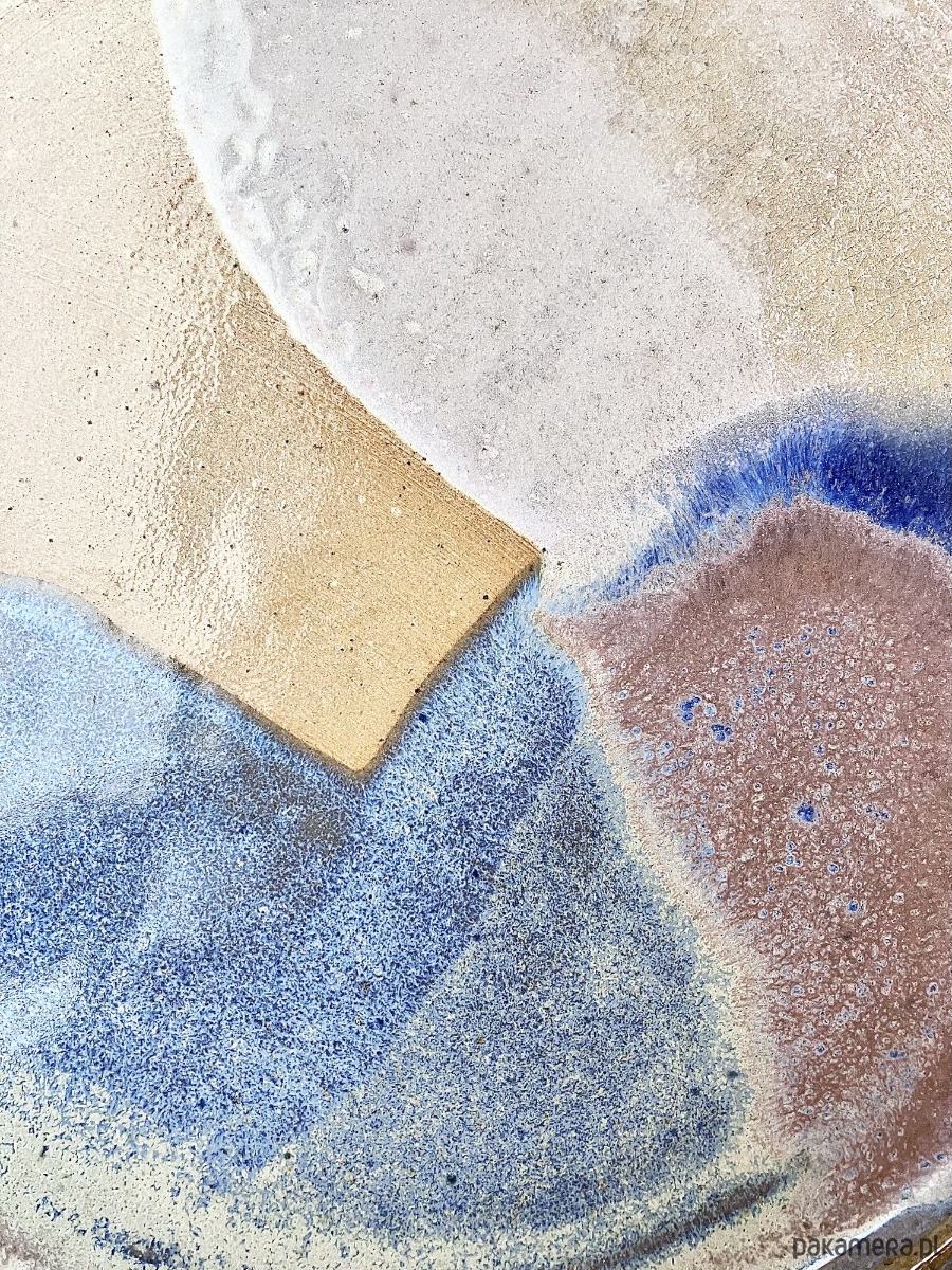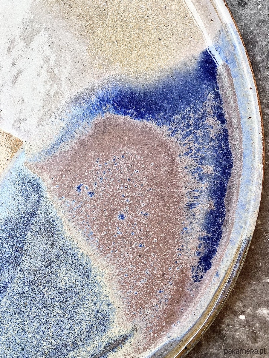 Każdy egzemplarz różni się odrobinę układem barw i charakterem spływów szkliwa, dzięki czemu każdy talerz jest jedyny w swoim rodzaju. Naturalna, lekko surowa ceramika łączy się tu z wyrazistym szkliwieniem, tworząc przedmiot zarówno funkcjonalny, jak i dekoracyjny.