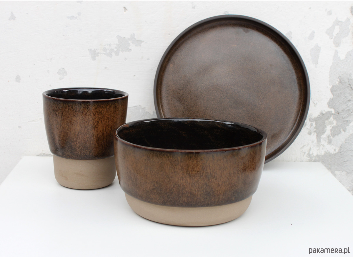 Kamionka w kolorze ciemnobrązowym + szkliwo, spód talerza matowy. Talerz powstał w jednym egzemplarzu, niepowtarzalny
