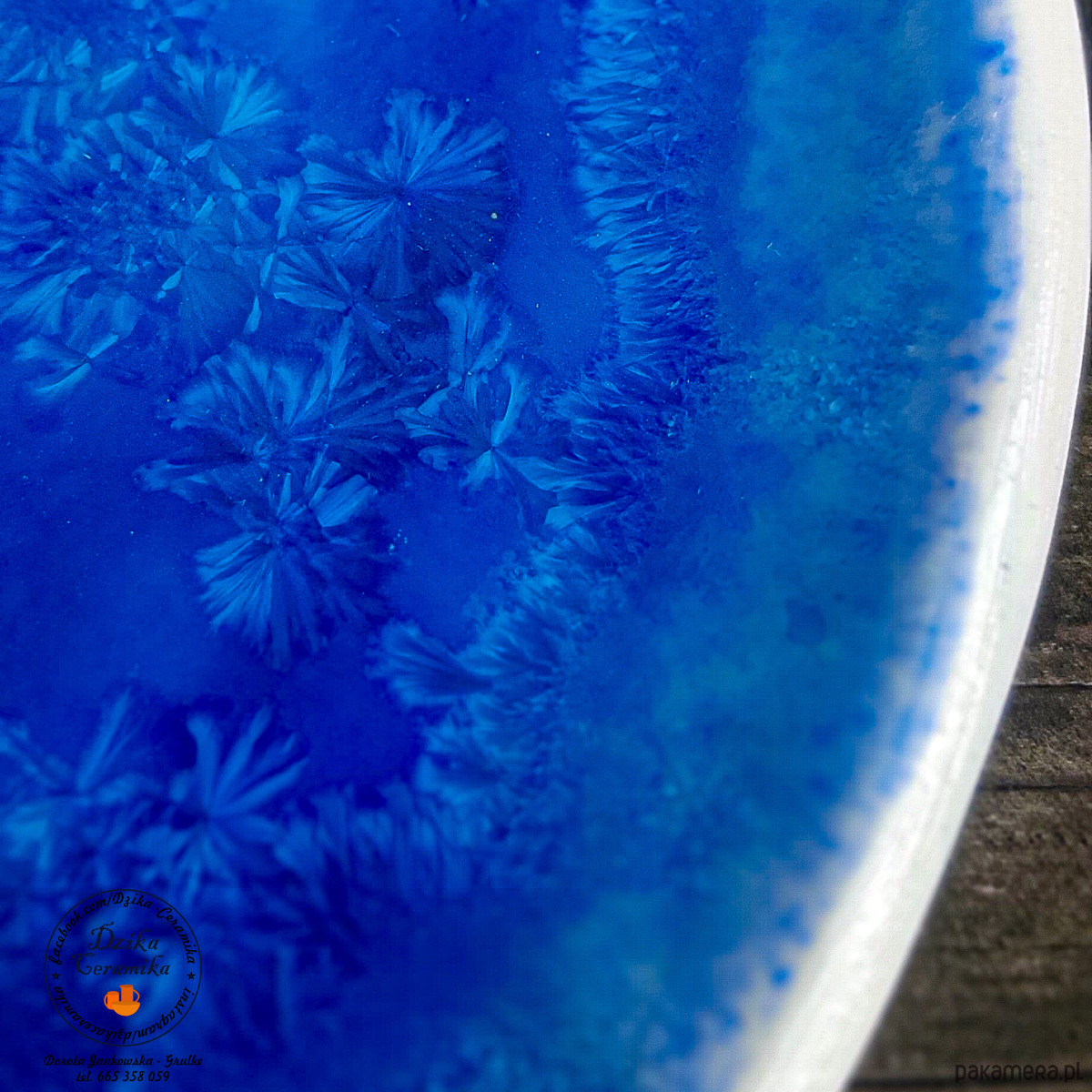Ten porcelanowy talerz pokryty został wyjątkowym szkliwem,