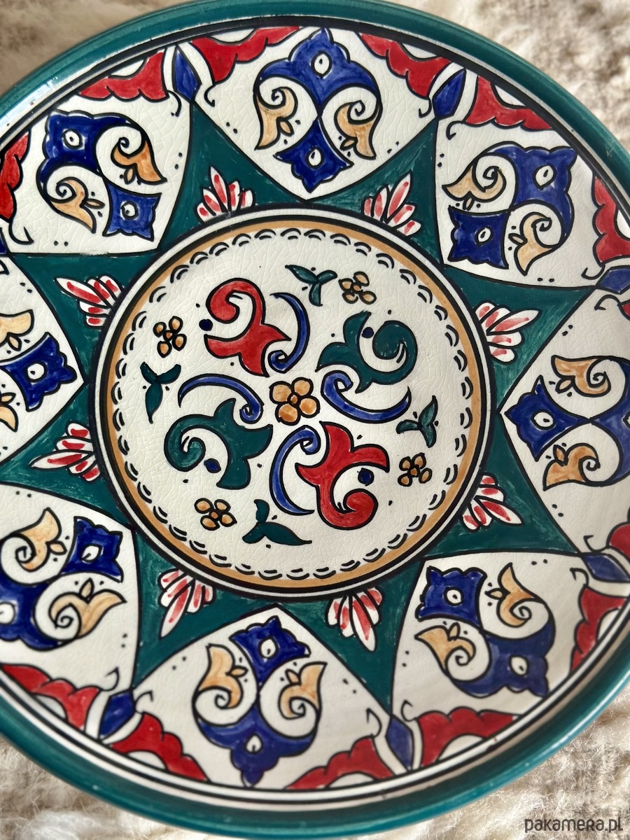 Talerz caramiczny marokański, ręcznie tworzony talerz