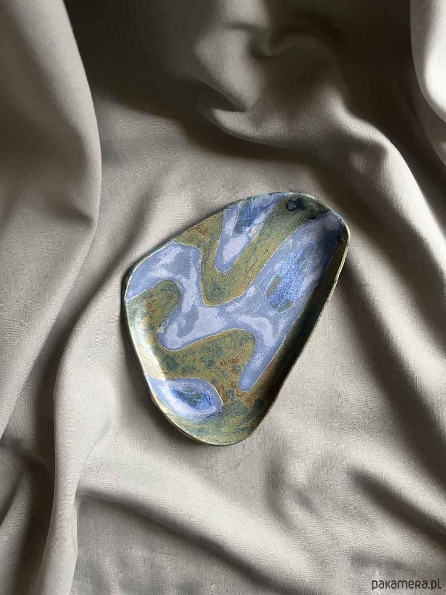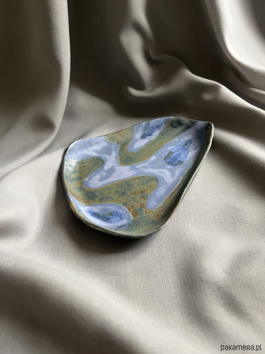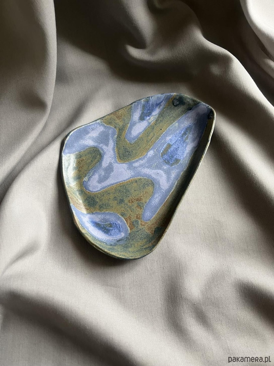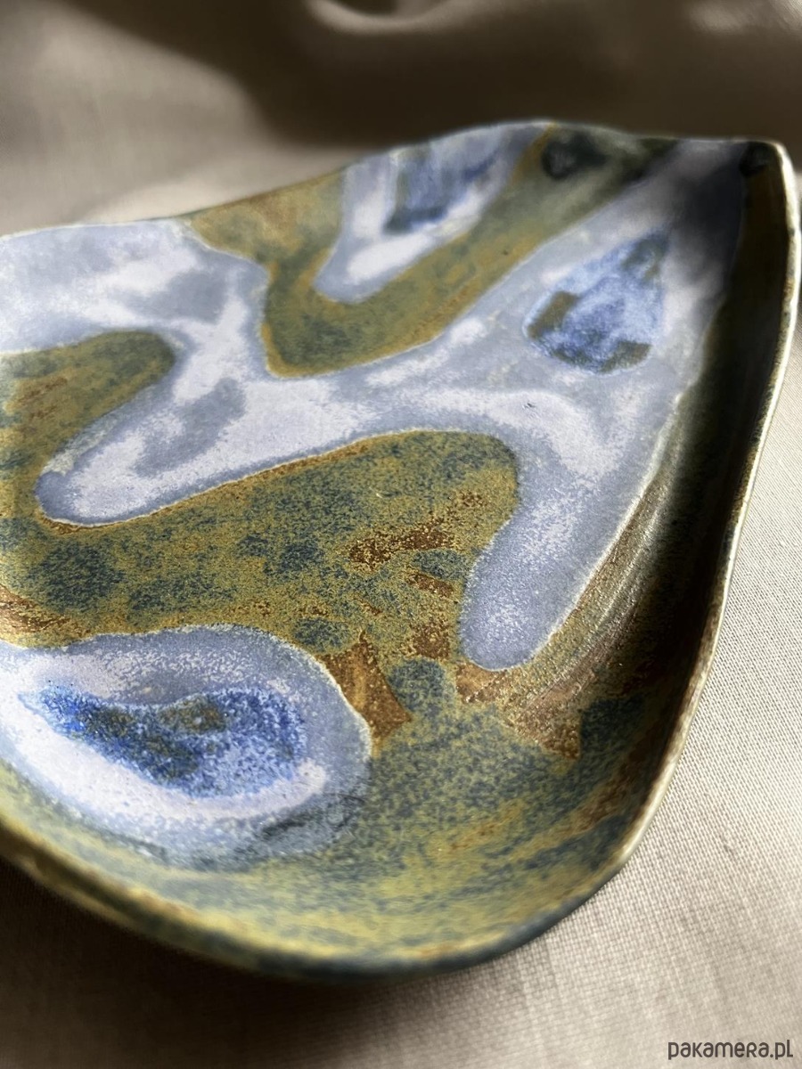 Unikatowy ceramiczny talerz półmisek w łączących się odcieniach zieleni, granatu, tworzących niepowtarzalne kompozycje barwne.