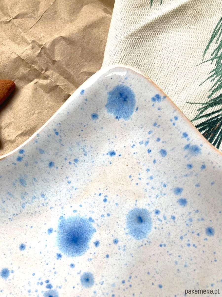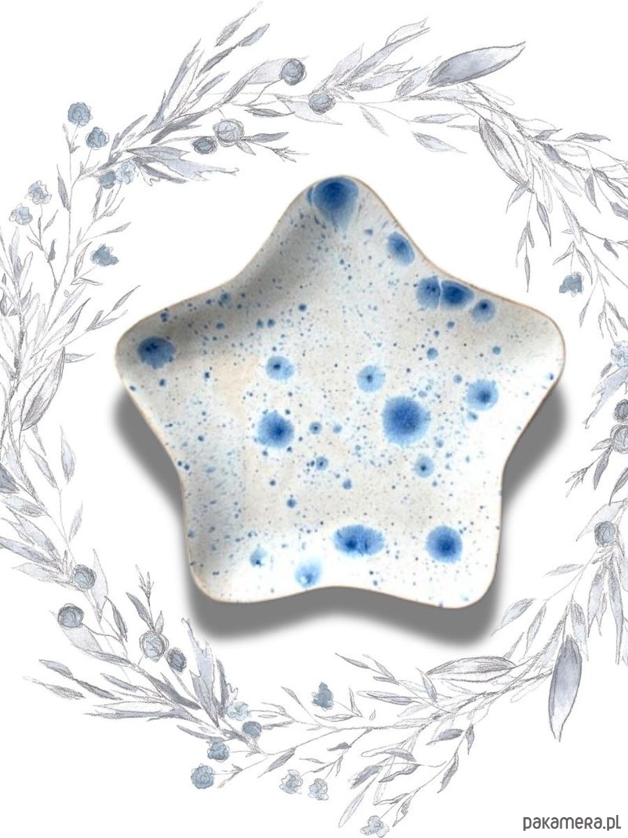 Ręcznie wykonany i niebiesko nakrapiany, przyciąga wzrok subtelnym blaskiem i niepowtarzalnym wzorem– każdy egzemplarz jest unikalny jak gwiazda na zimowym niebie.