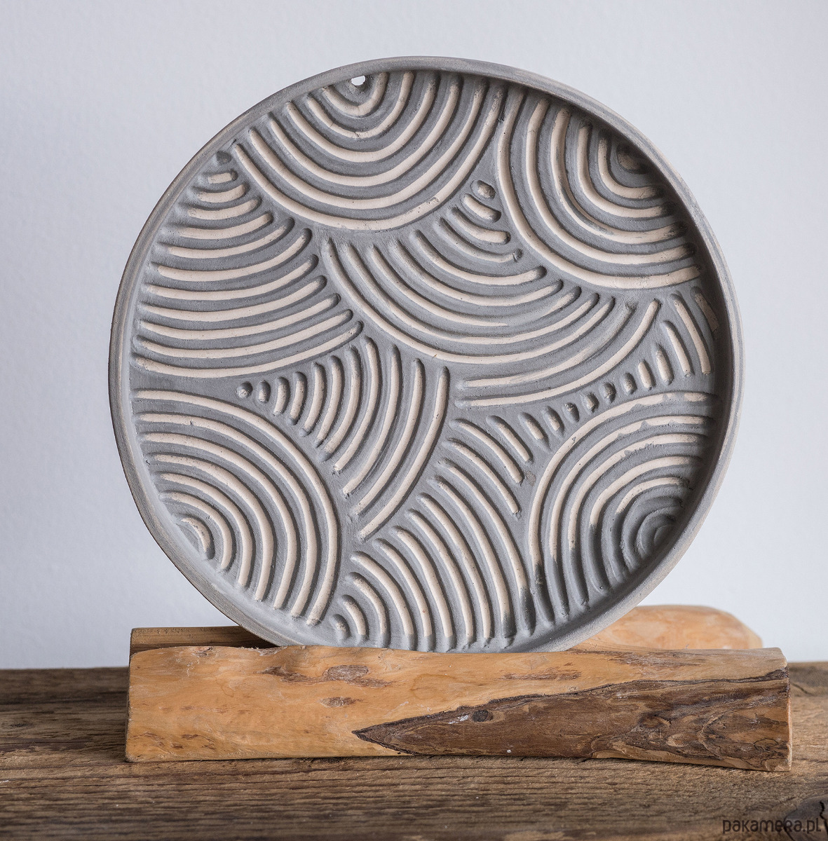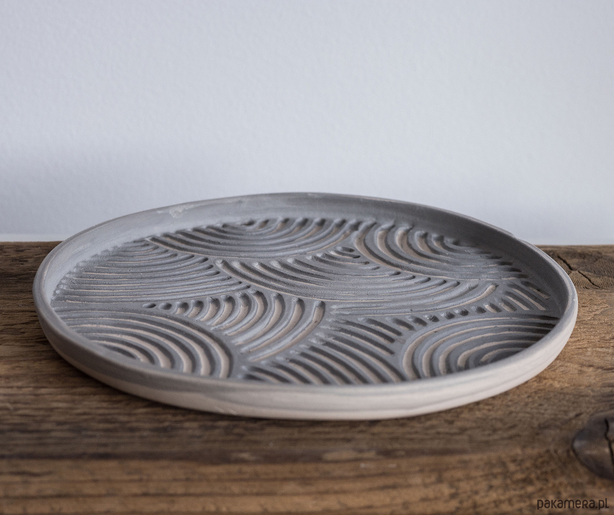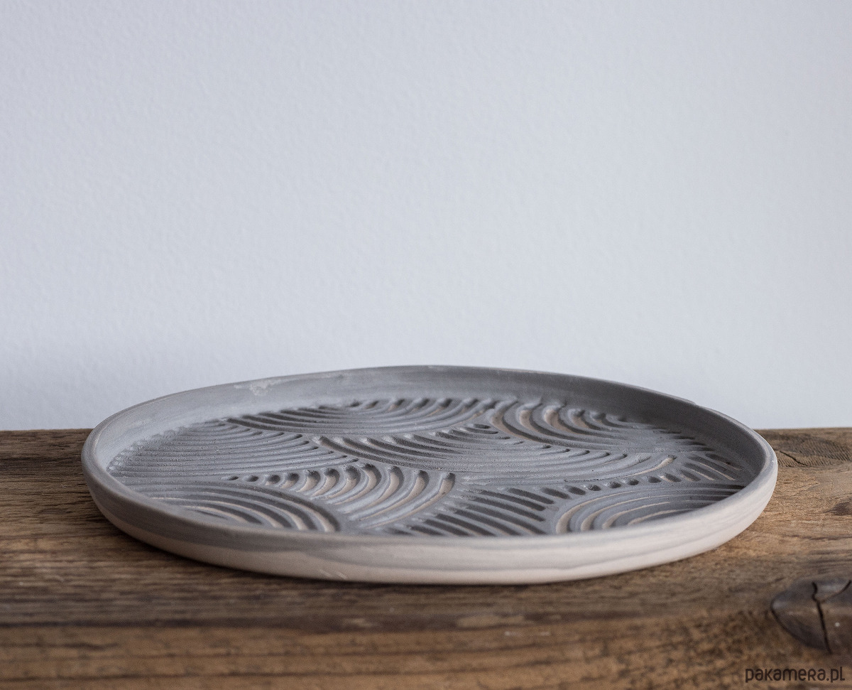 talerz ręcznie lepiony z łączonych glin jasnej i ciemnej