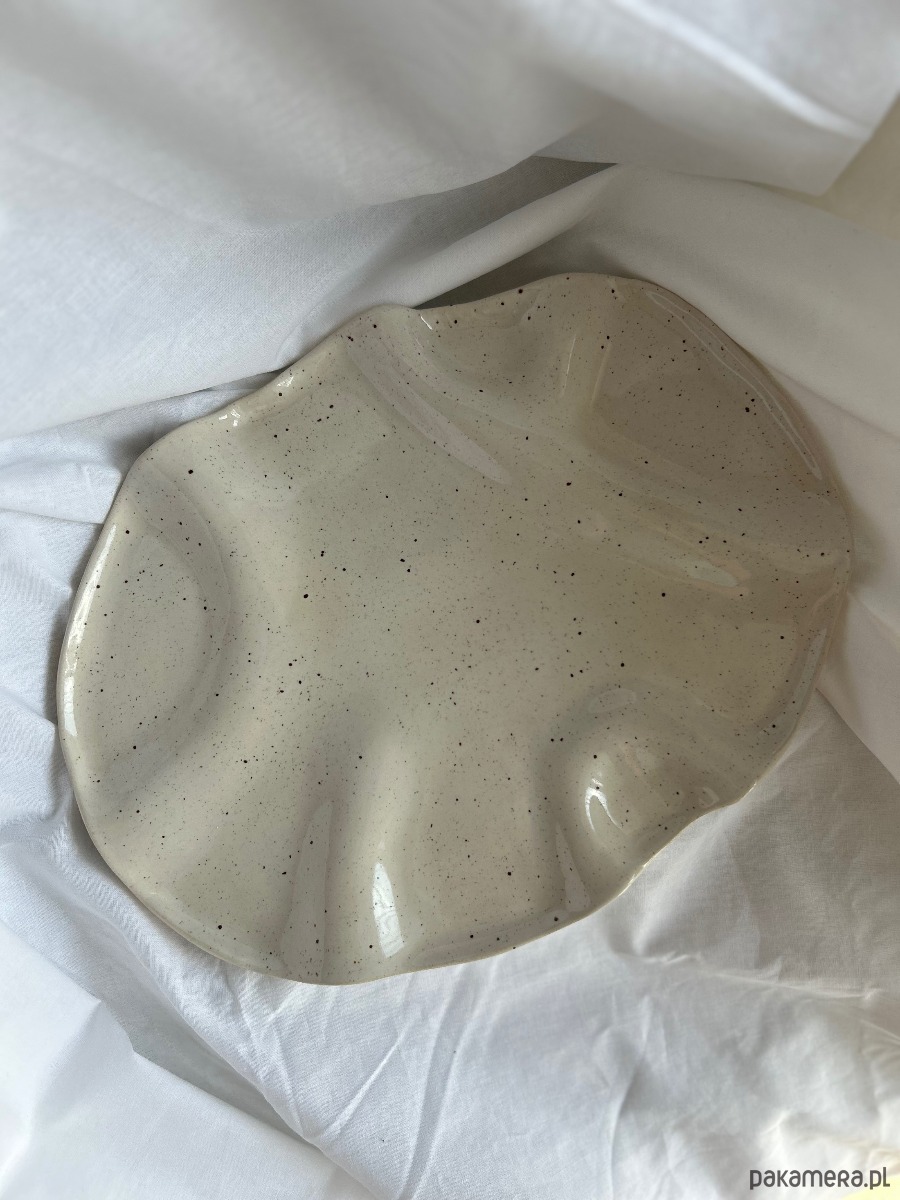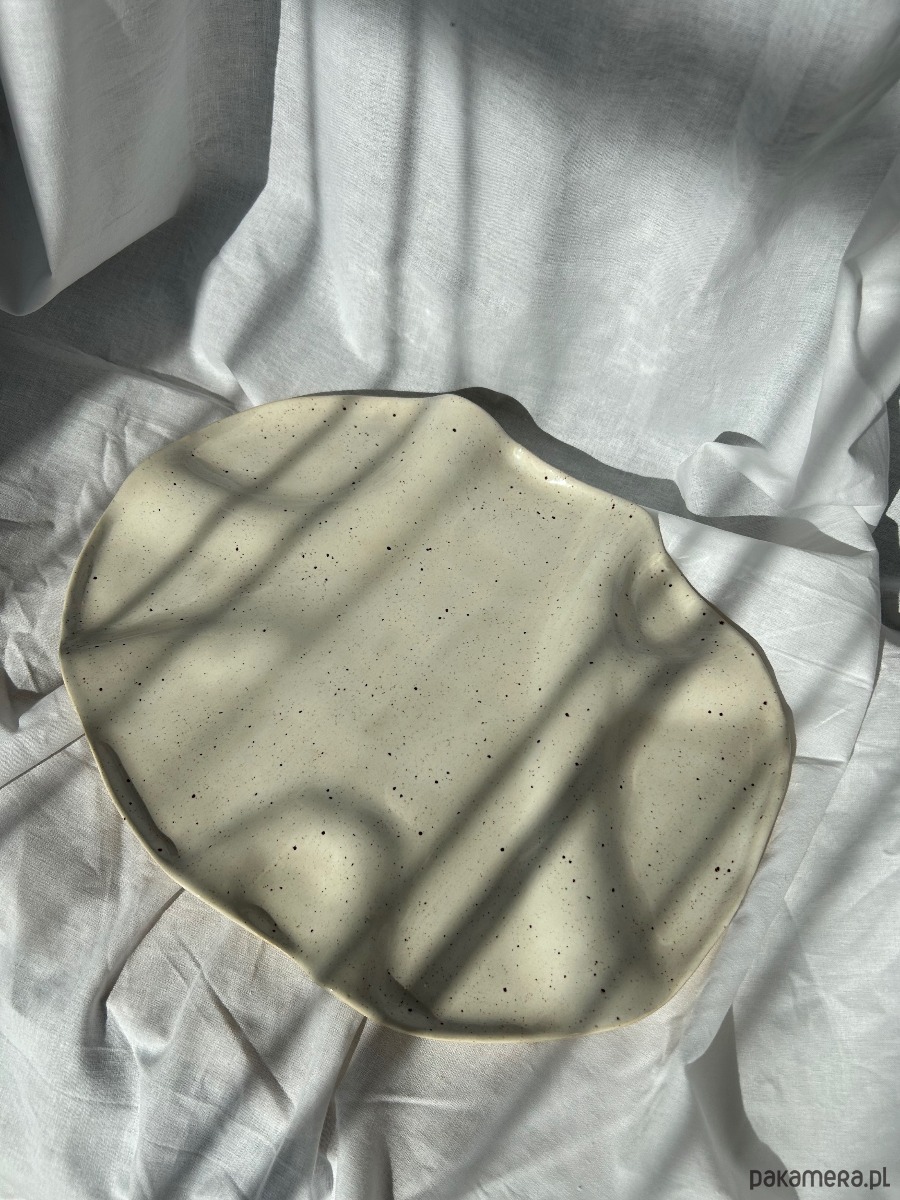Talerz do serwowania, ręcznie wykonany z użyciem jasnej gliny. Szkliwo którego użyłam nadaje się do kontaktu z żywnością. Każdy talerz jest unikatowy i niepowtarzalny.