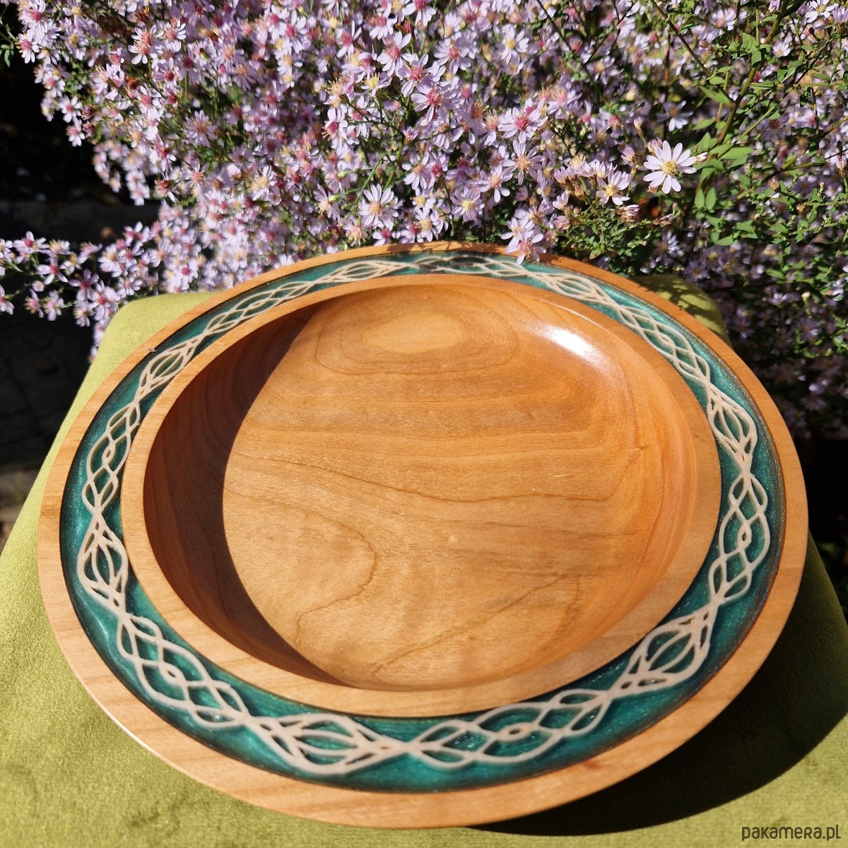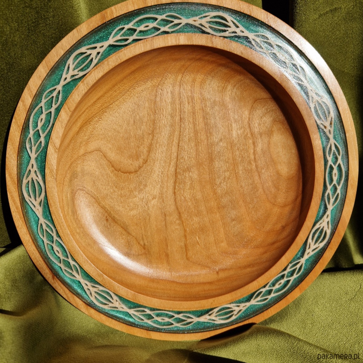 Wyeksponuj ten talerz na stojaku lub umieść go na środku stołu. Jego design łączy w sobie użyteczność i sztukę. Niektórzy zobaczą w nim echa elfiej wiedzy, inni poczują ducha secesji, a wielu po prostu będzie podziwiać sposób, w jaki drewno i żywica harmonijnie ze sobą współgrają.
