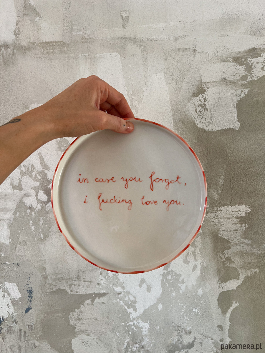 Porcelanowy talerz z napisem In case you forgot I fucking love you.
