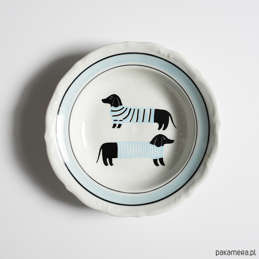Talerz na ścianę - jamniki w ubrankach