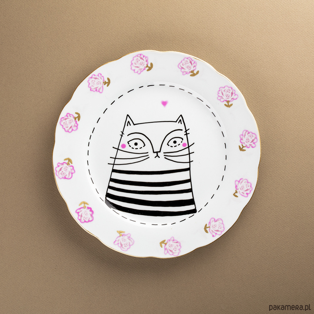 Talerz z kotem zakochanym, stworzony był w duchu zero waste i upcykling - pochodzi z drugiej ręki. Kiedyś przez kogoś używany, później zapomniany, teraz ma szansę stanowić unikatową dekorację na Twoją ścianę! Kupując przedmioty od Empe dbasz o naszą planetę ♥