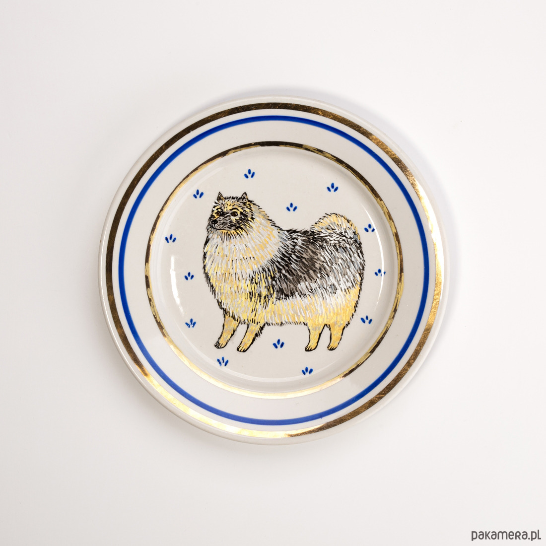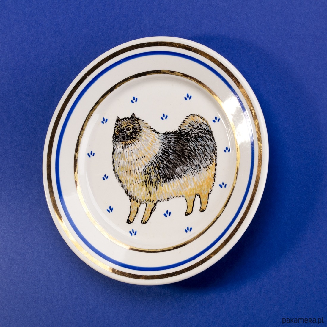 Porcelanowy talerz, ręcznie malowany przez Empe artstudio. Talerz z pieskiem rasy keeshond, stworzony był w duchu zero waste i upcykling - pochodzi z drugiej ręki. Kiedyś przez kogoś używany, później zapomniany, teraz ma szansę stanowić unikatową dekorację na Twoją ścianę! Kupując przedmioty od Empe dbasz o naszą planetę ♥