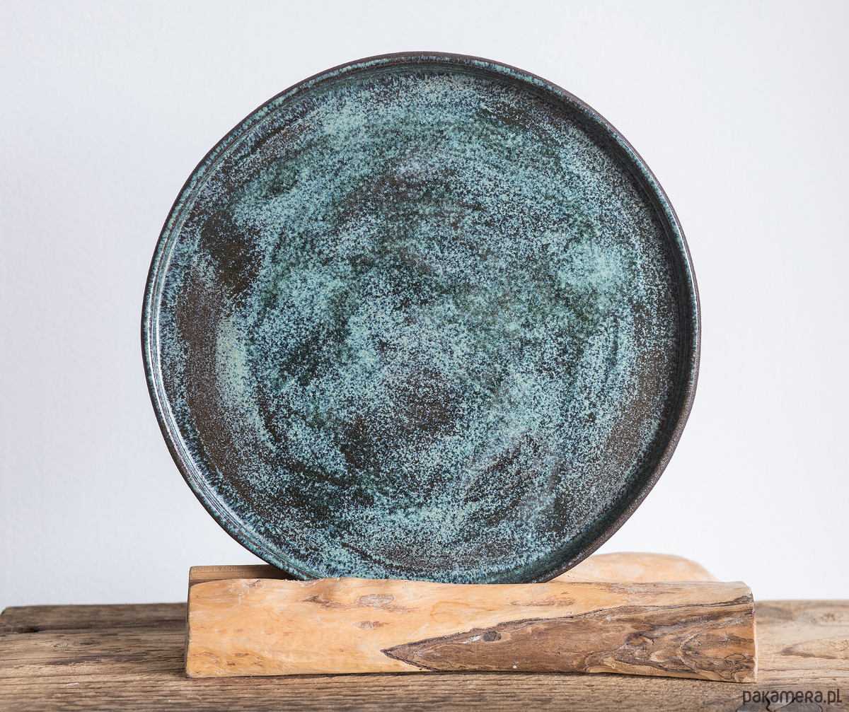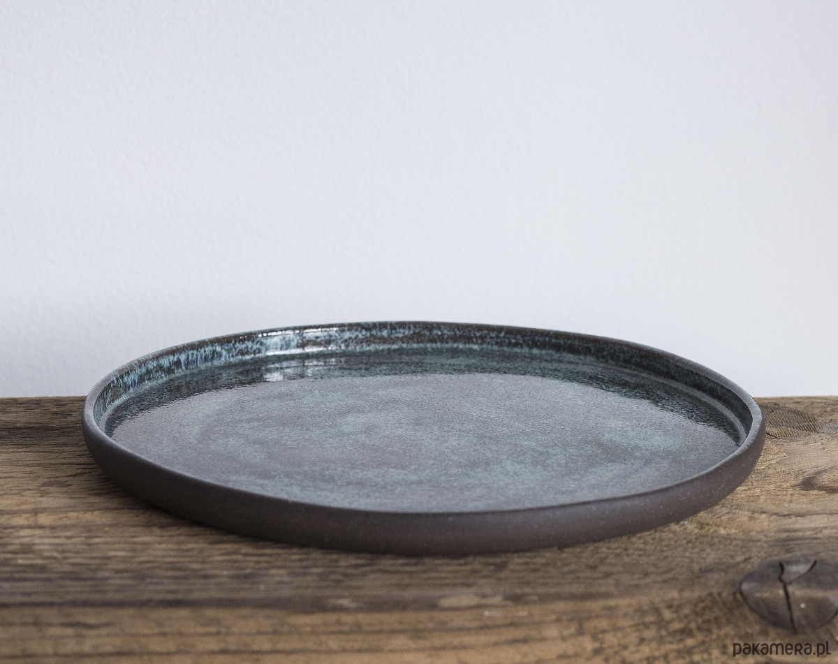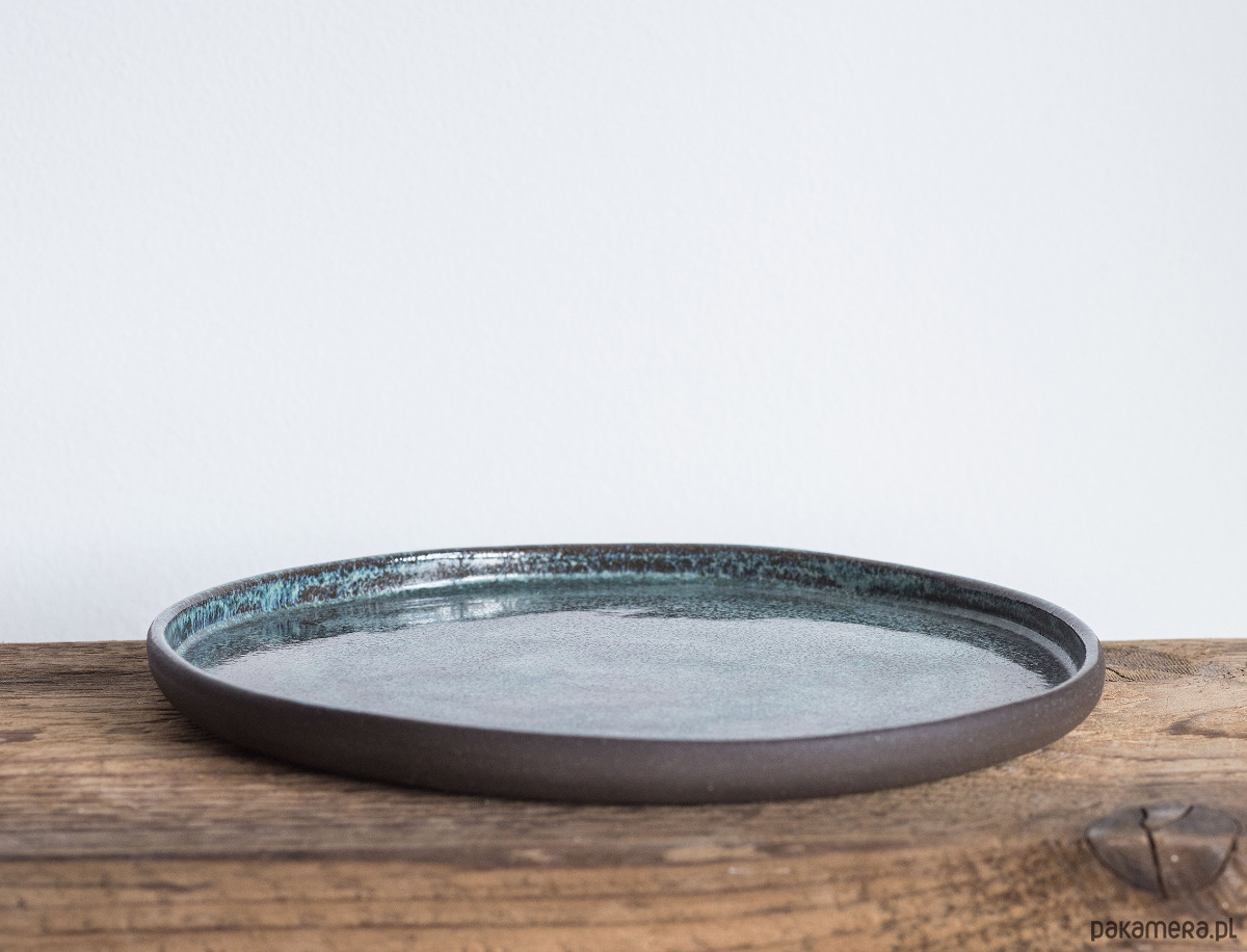 talerz ręcznie toczony z ciemnej gliny kamionkowej