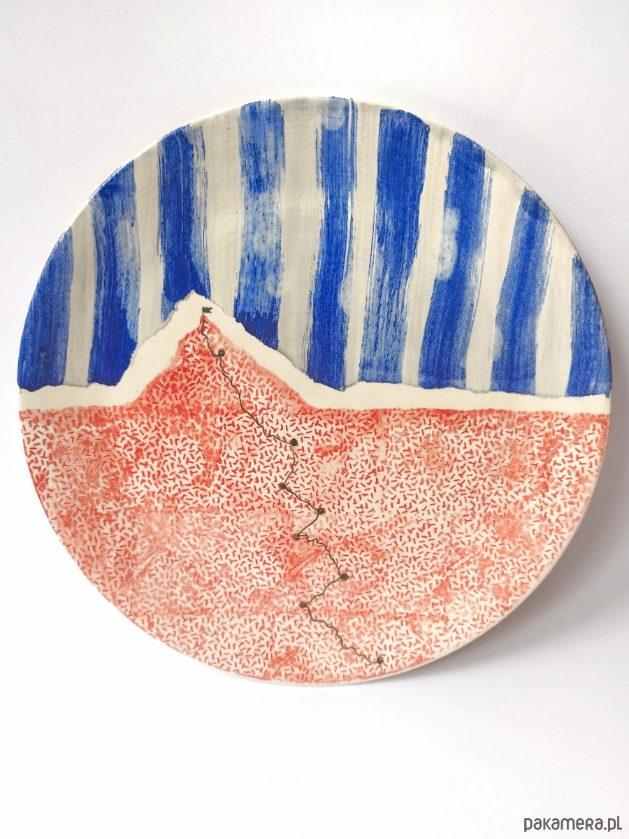 Talerz powstał, w mojej pracowni, aby dodać energii Twoim wnętrzom. Jego energetyczny design doda Ci sił podczas codziennych zmagań. Będzie On tylko i wyłącznie Twój, bo drugiego takiego nie ma. Połączenie ultramaryny i ognistej czerwieni doda przyspieszenia niczym energetyczny batonik.